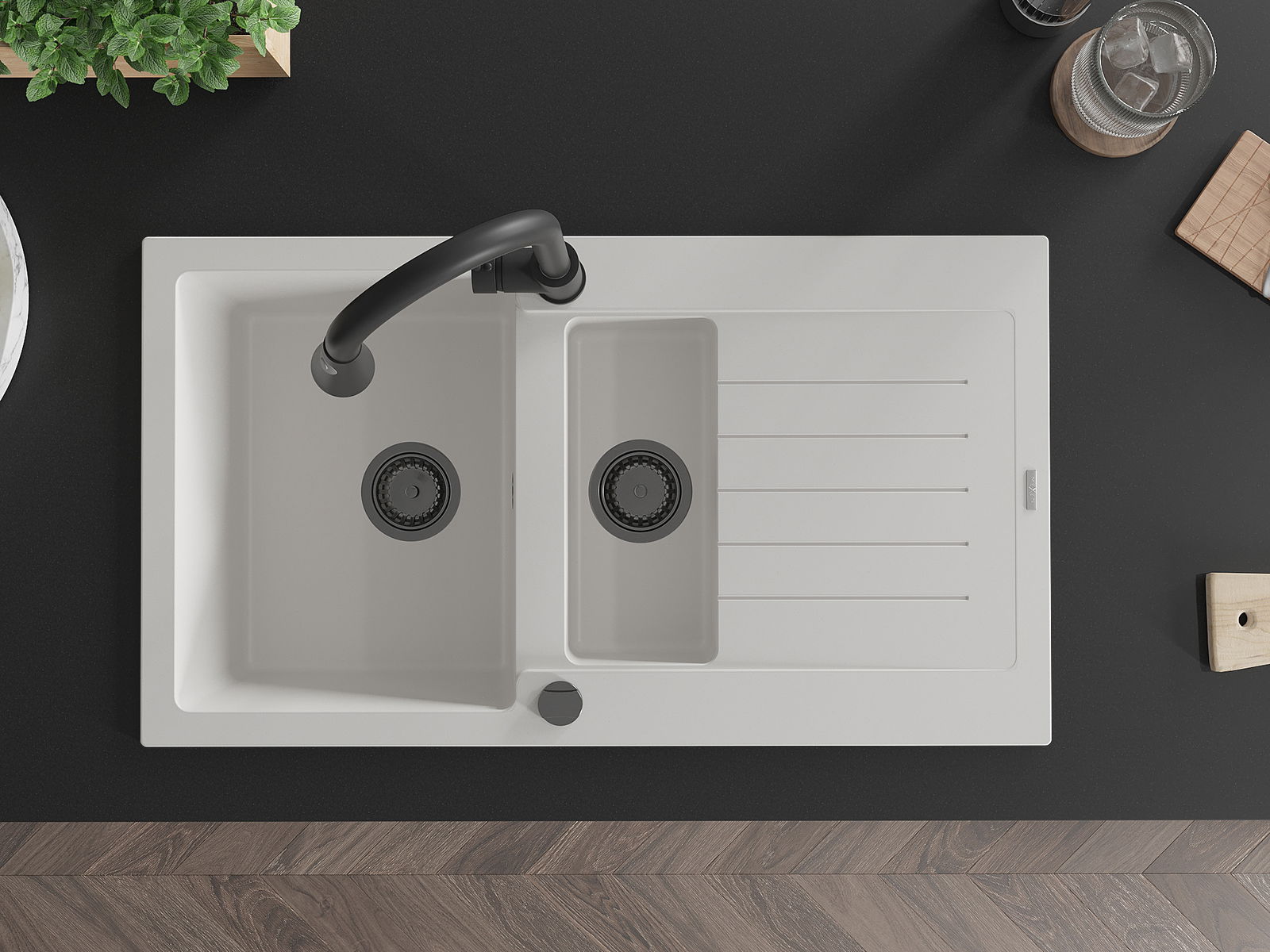 La surface de l'évier est très bien trempée et se distingue par une résistance exceptionnelle aux dommages mécaniques et aux rayures. Ce matériau durable vous permettra de profiter de son bel aspect pendant de nombreuses années.