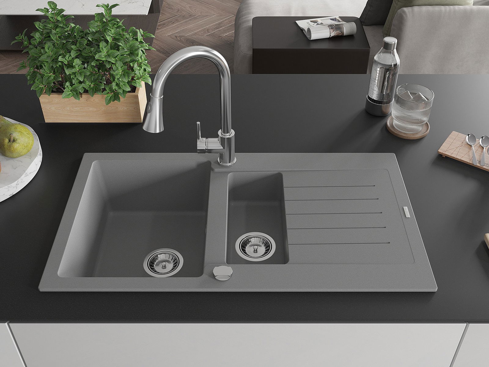 L'évier est fabriqué en granit de haute qualité. Il constitue un complément élégant et surtout pratique pour toute cuisine, quel que soit son style. La qualité et la durabilité du granit garantissent de nombreuses années d'utilisation.