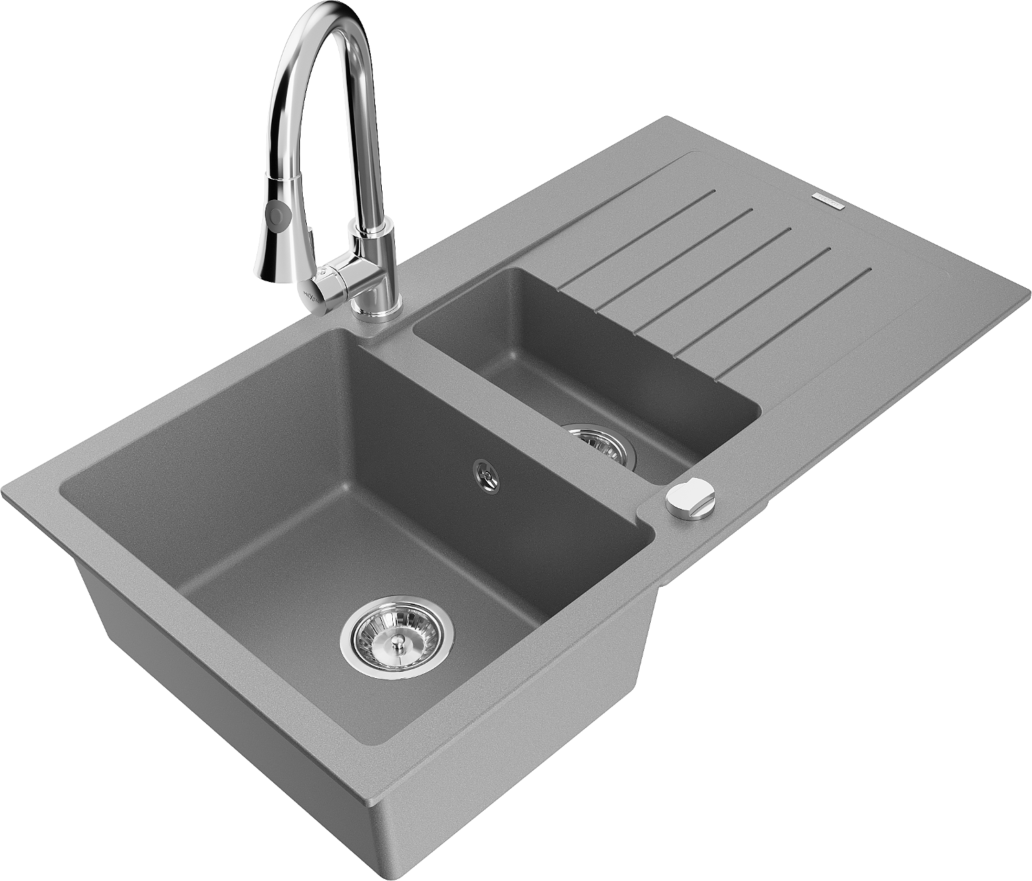 Mexen Matias évier en granit 1,5 bac avec égouttoir et robinet de cuisine Elia, gris - 6502-71-670101-00