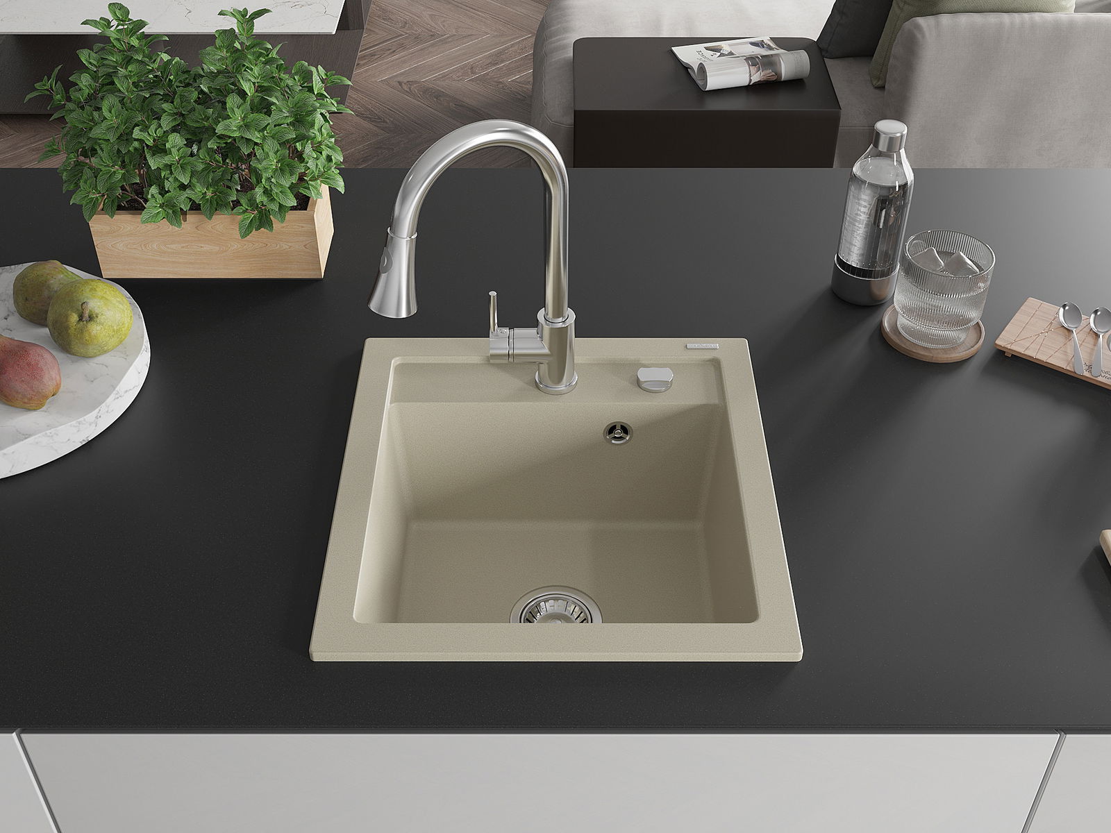 L'évier est fabriqué en granit de haute qualité. Il constitue un complément élégant et surtout pratique pour toute cuisine, quel que soit son style. La qualité et la durabilité du granit garantissent de nombreuses années d'utilisation.
