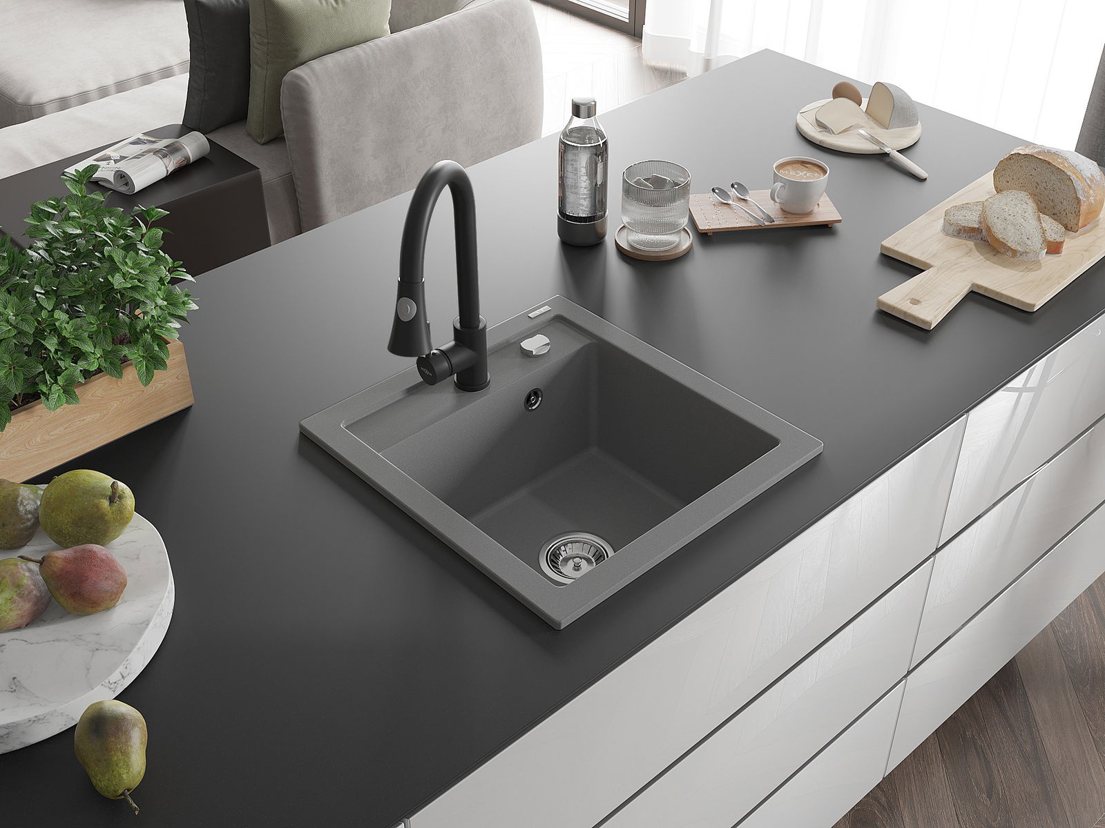 L'évier est fabriqué en granit de haute qualité. Il constitue un complément élégant et surtout pratique pour toute cuisine, quel que soit son style. La qualité et la durabilité du granit garantissent de nombreuses années d'utilisation.
