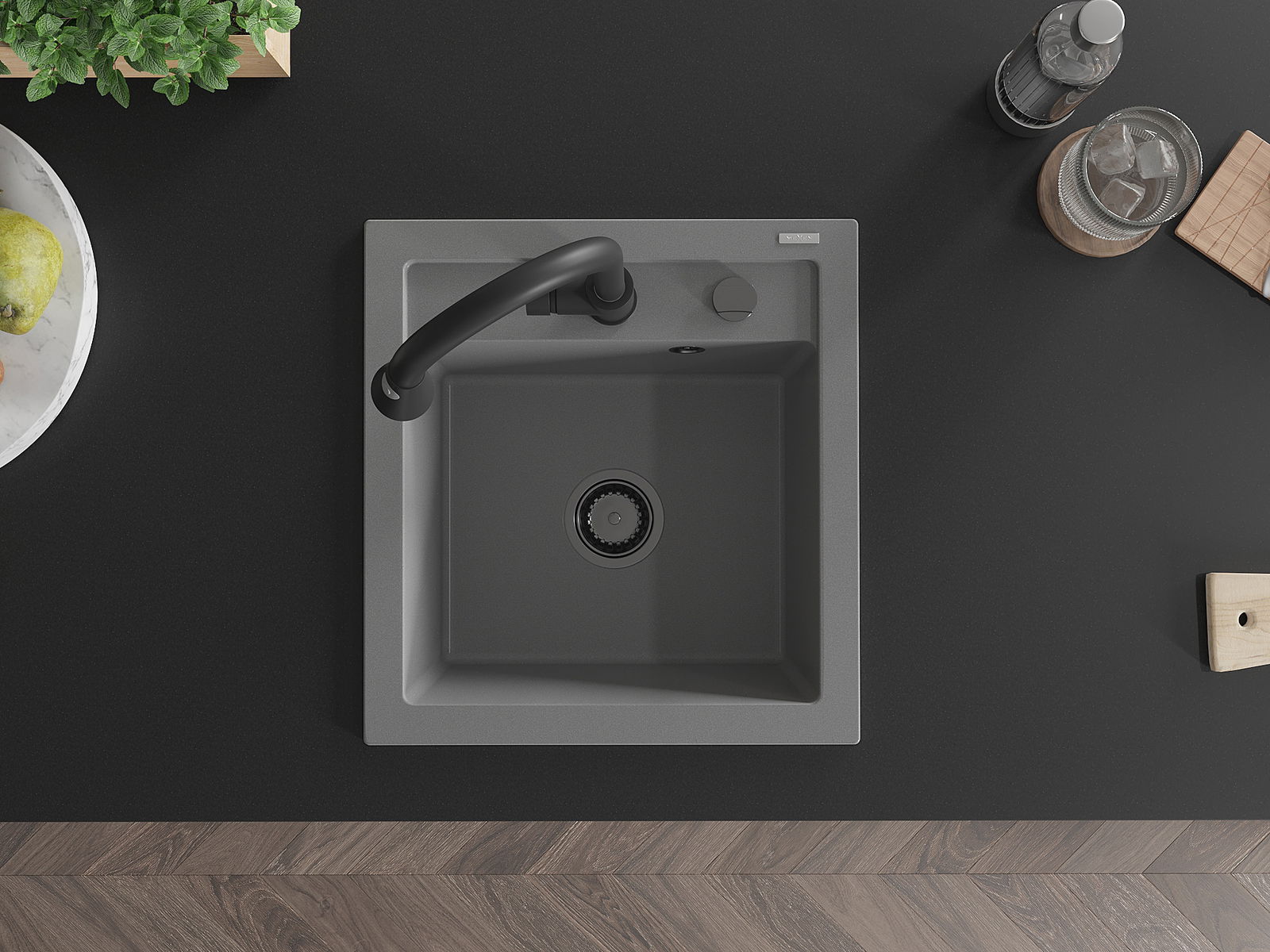 Mexen Vito évier en granit 1 bac avec robinet de cuisine Elia, gris - 6503-71-670101-70-B