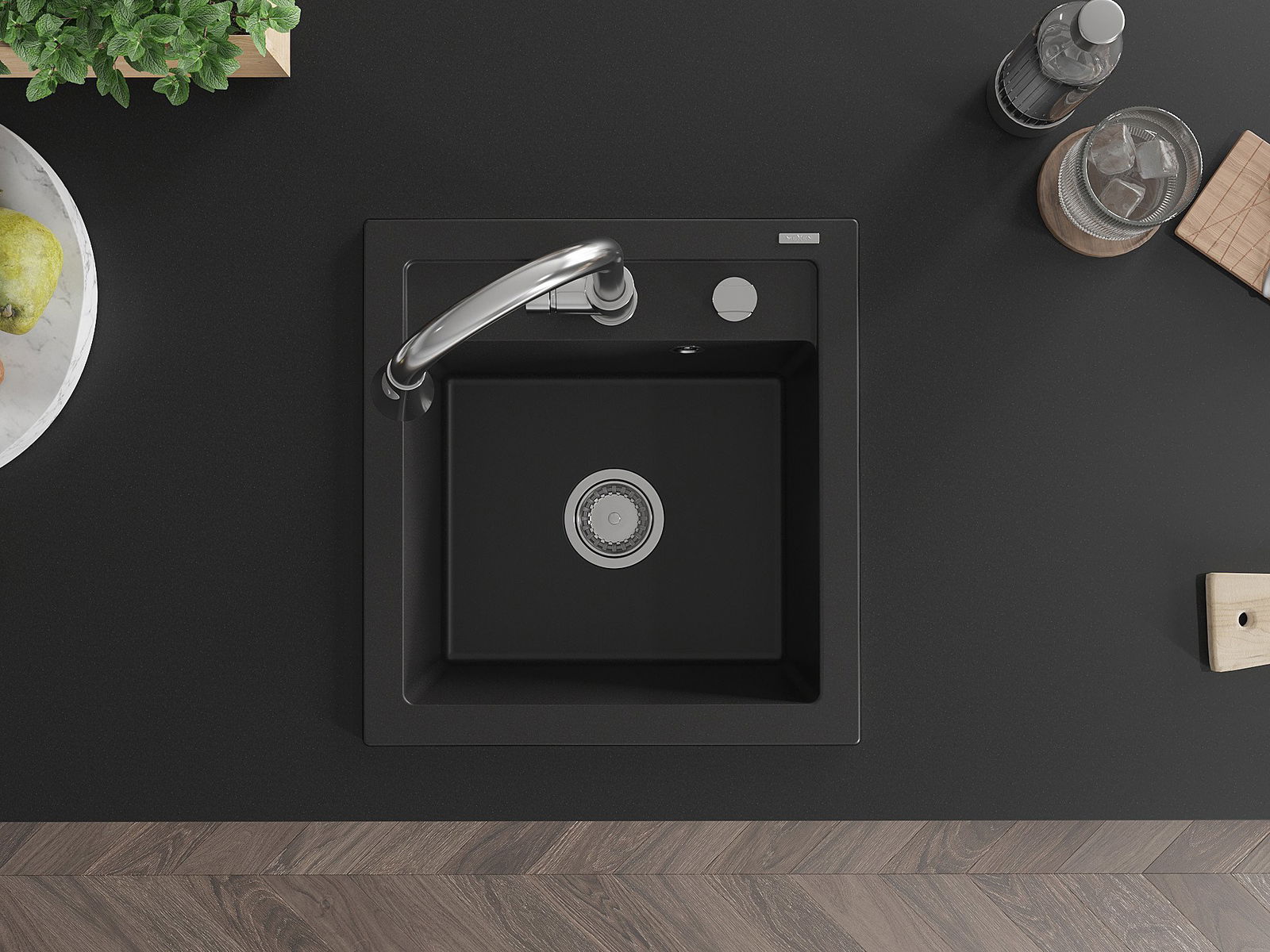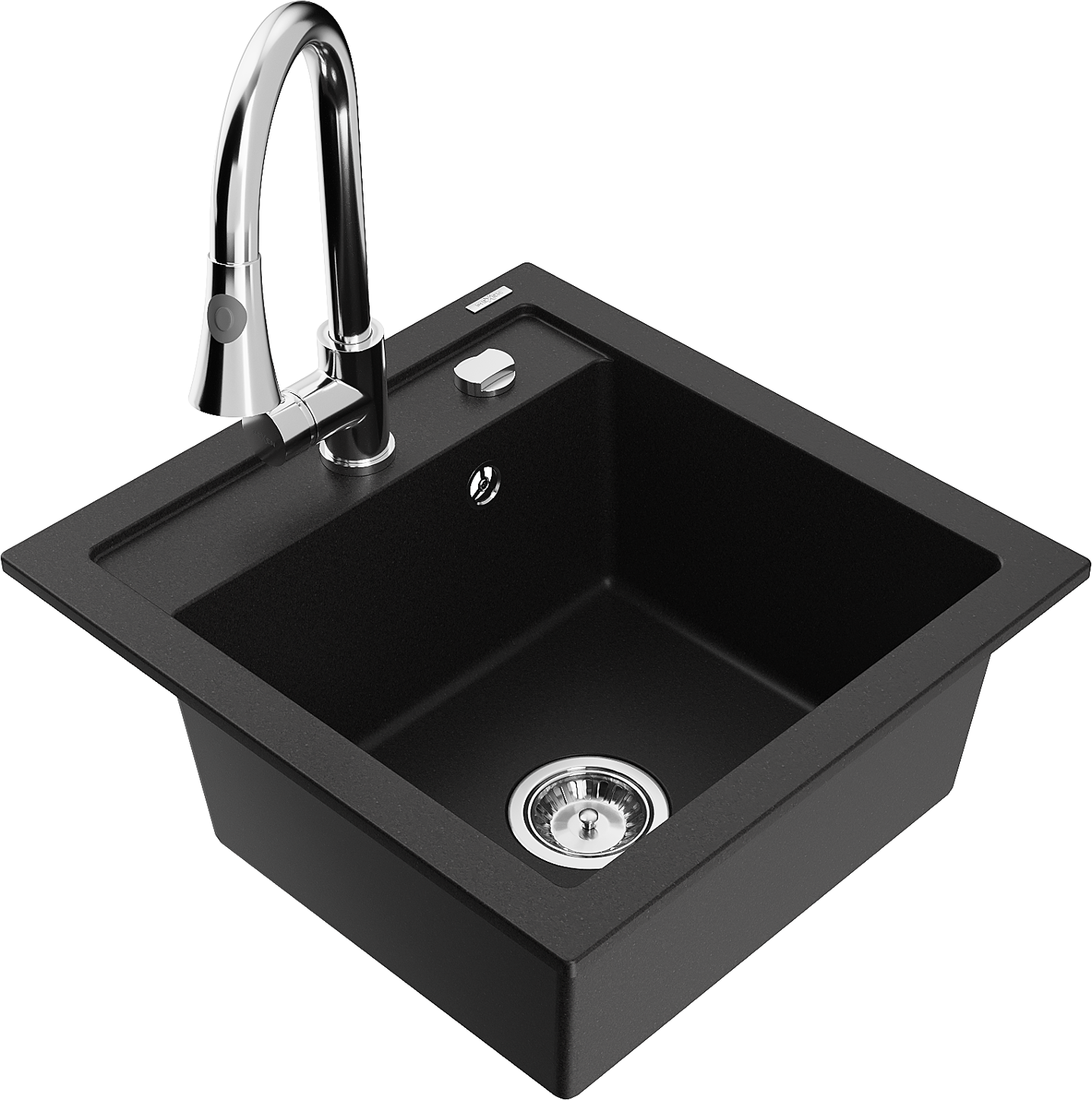 Mexen Vito évier en granit 1 bac avec robinet de cuisine Elia, noir - 6503-77-670101-00