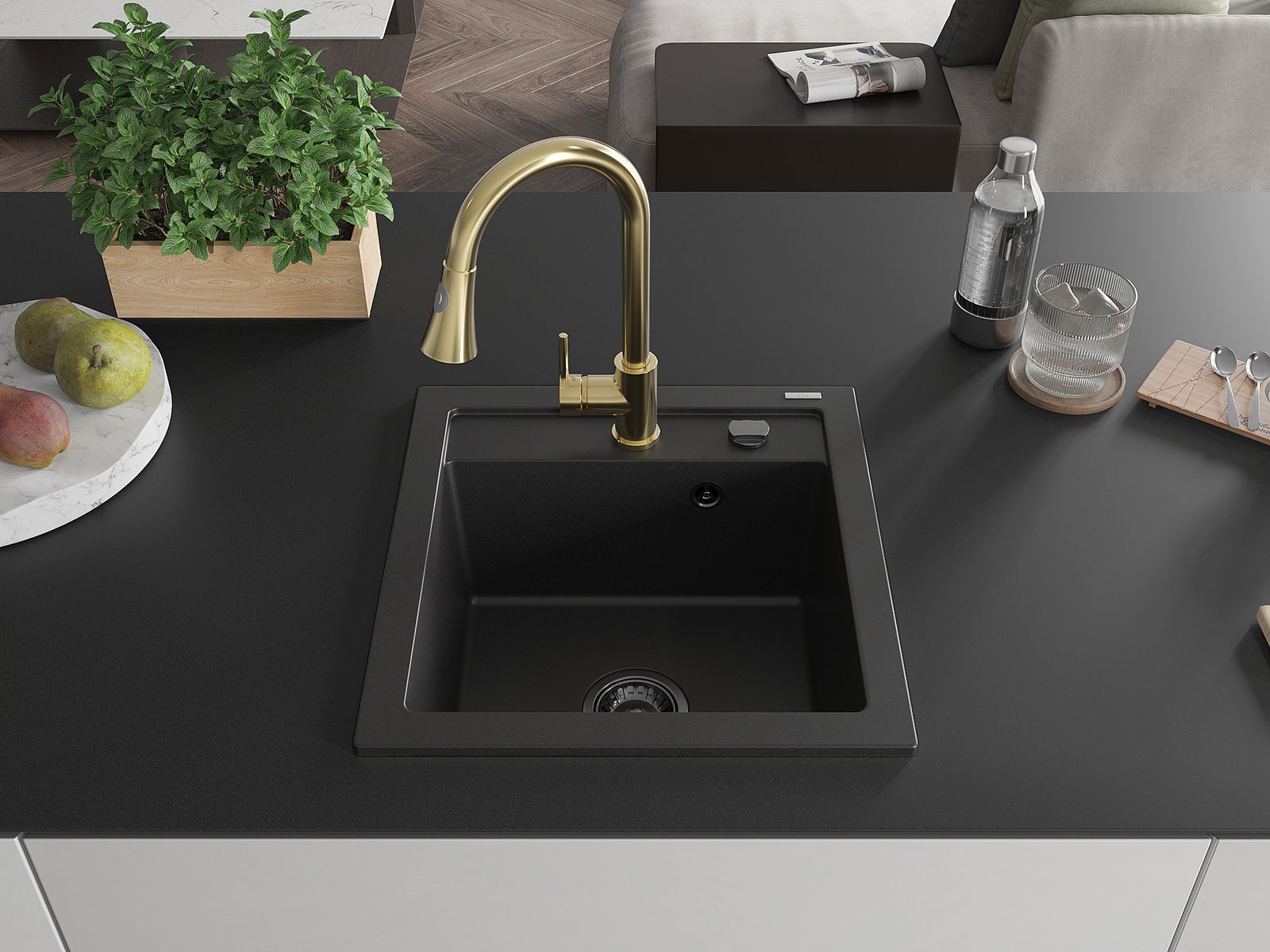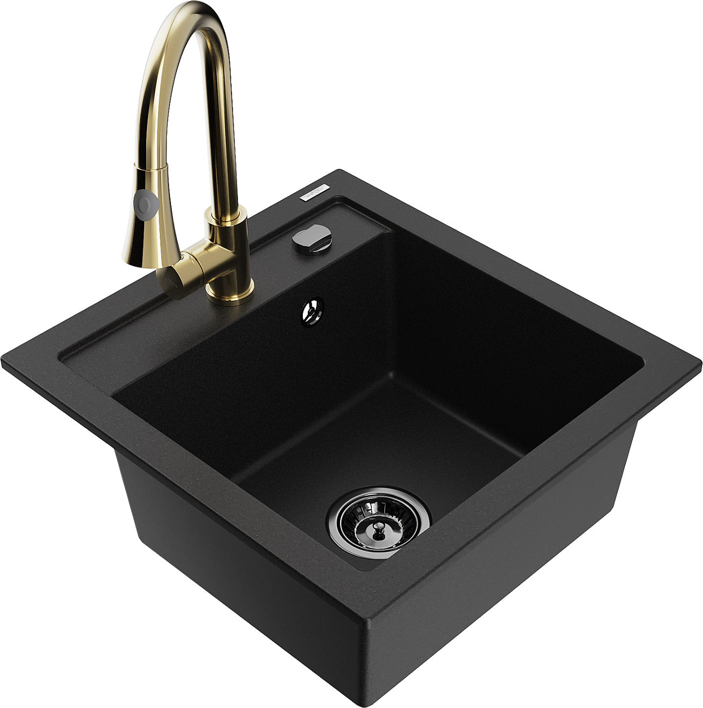 Mexen Vito évier en granit 1 bac avec robinet de cuisine Elia, noir - 6503-77-670101-50-B