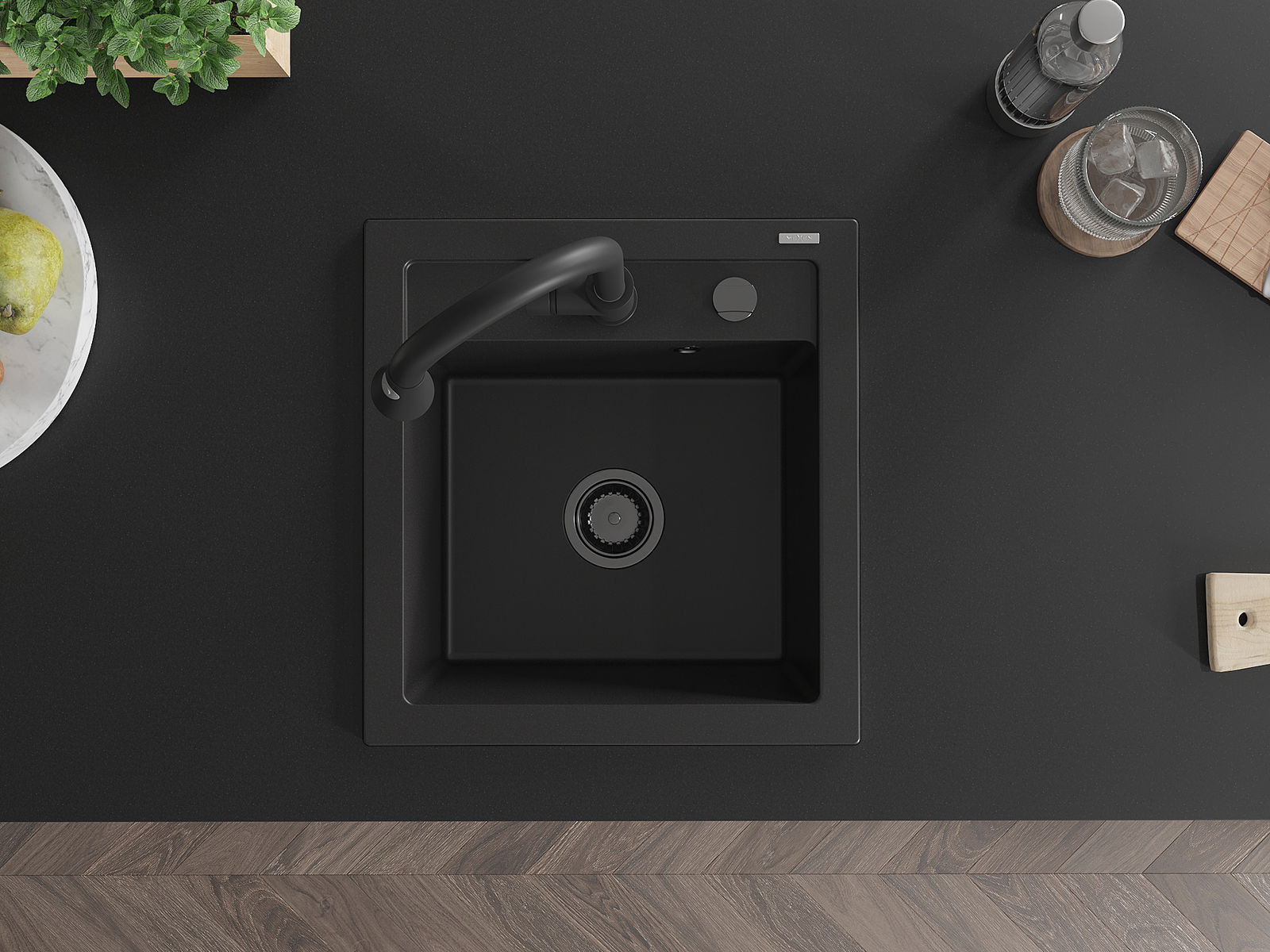 Mexen Vito évier en granit 1 bac avec robinet de cuisine Elia, noir - 6503-77-670101-70-B