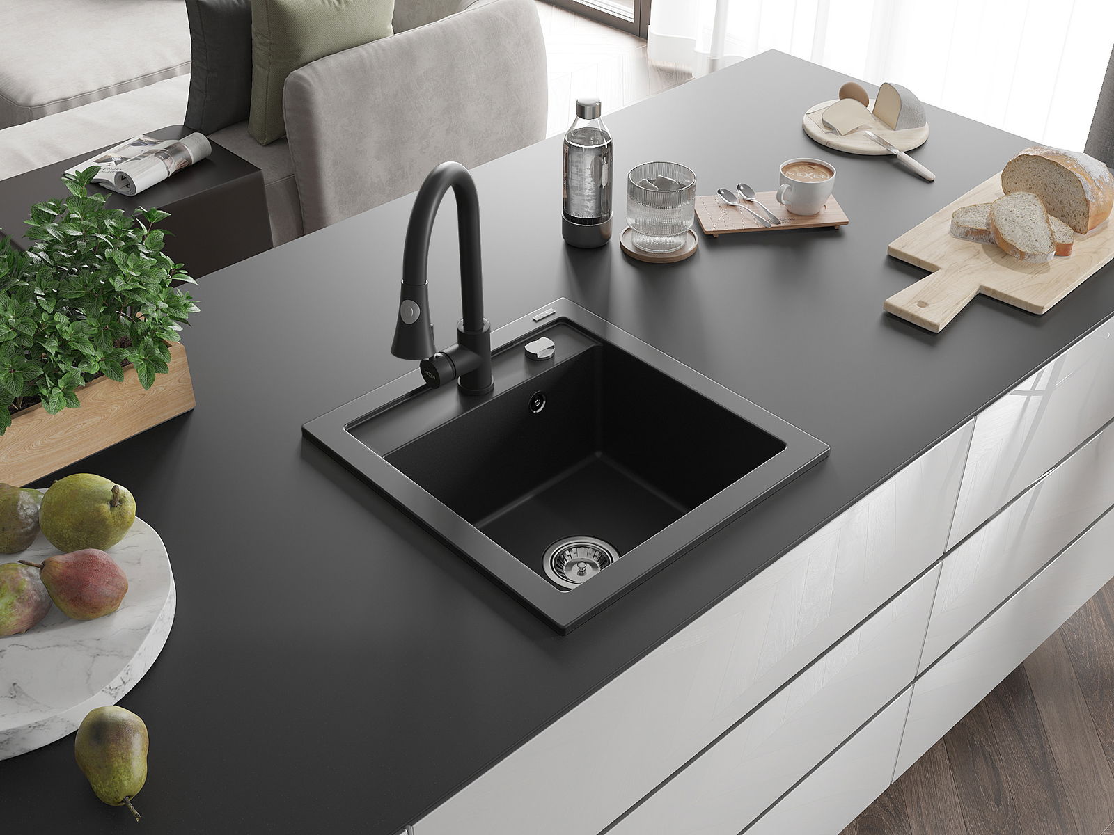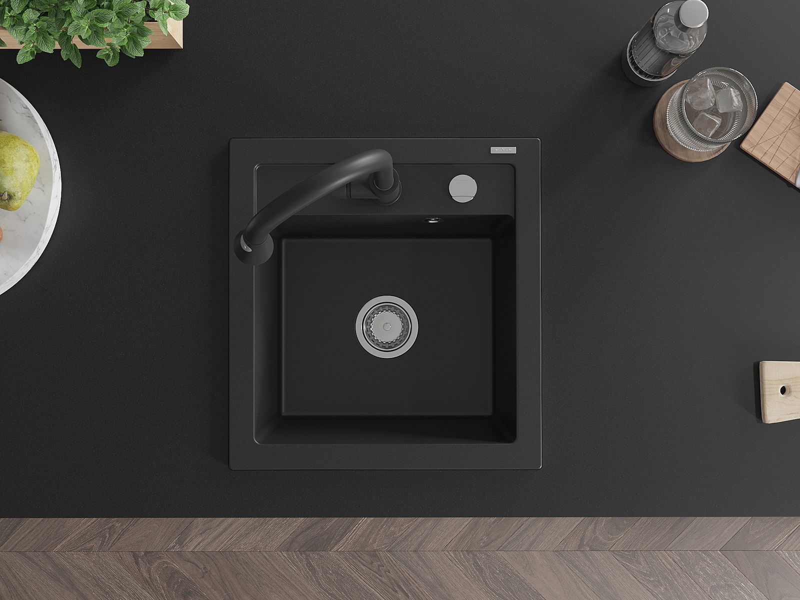 Mexen Vito évier en granit 1 bac avec robinet de cuisine Elia, noir - 6503-77-670101-70