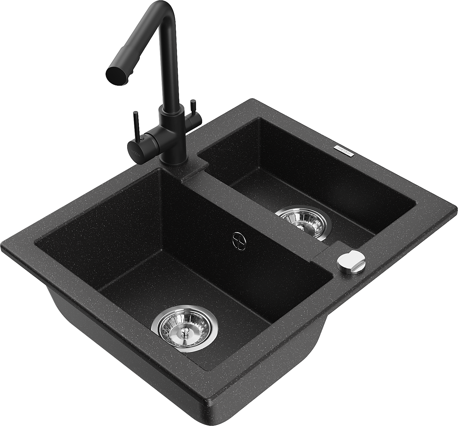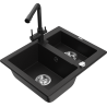 Mexen Carlos évier en granit 1,5 cuves avec robinet de cuisine Duero, noir/métallique argenté - 6518-73-671600-70