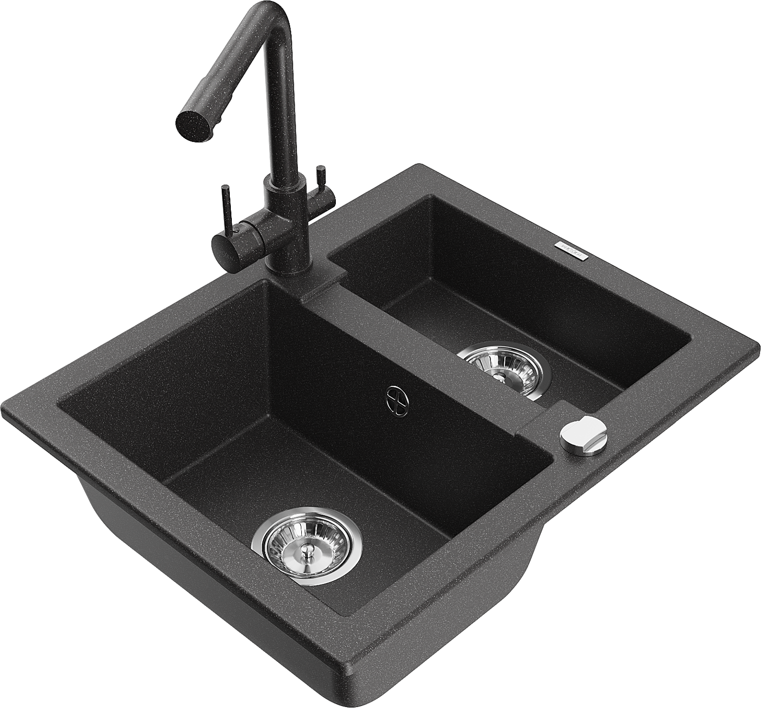 Mexen Carlos évier en granit 1,5 bac avec mitigeur de cuisine Duero, noir moucheté - 6518-76-671600-76