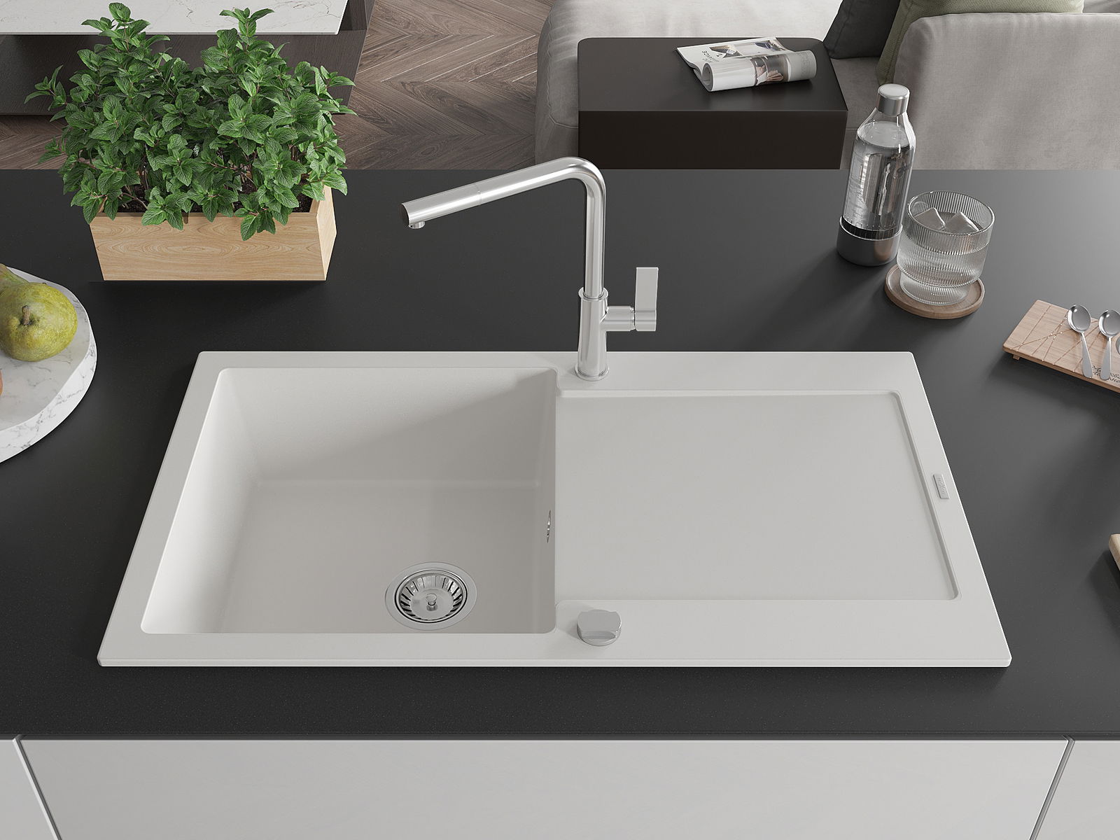 L'évier est fabriqué en granit de haute qualité. Il constitue un complément élégant et surtout pratique pour toute cuisine, quel que soit son style. La qualité et la durabilité du granit garantissent de nombreuses années d'utilisation.