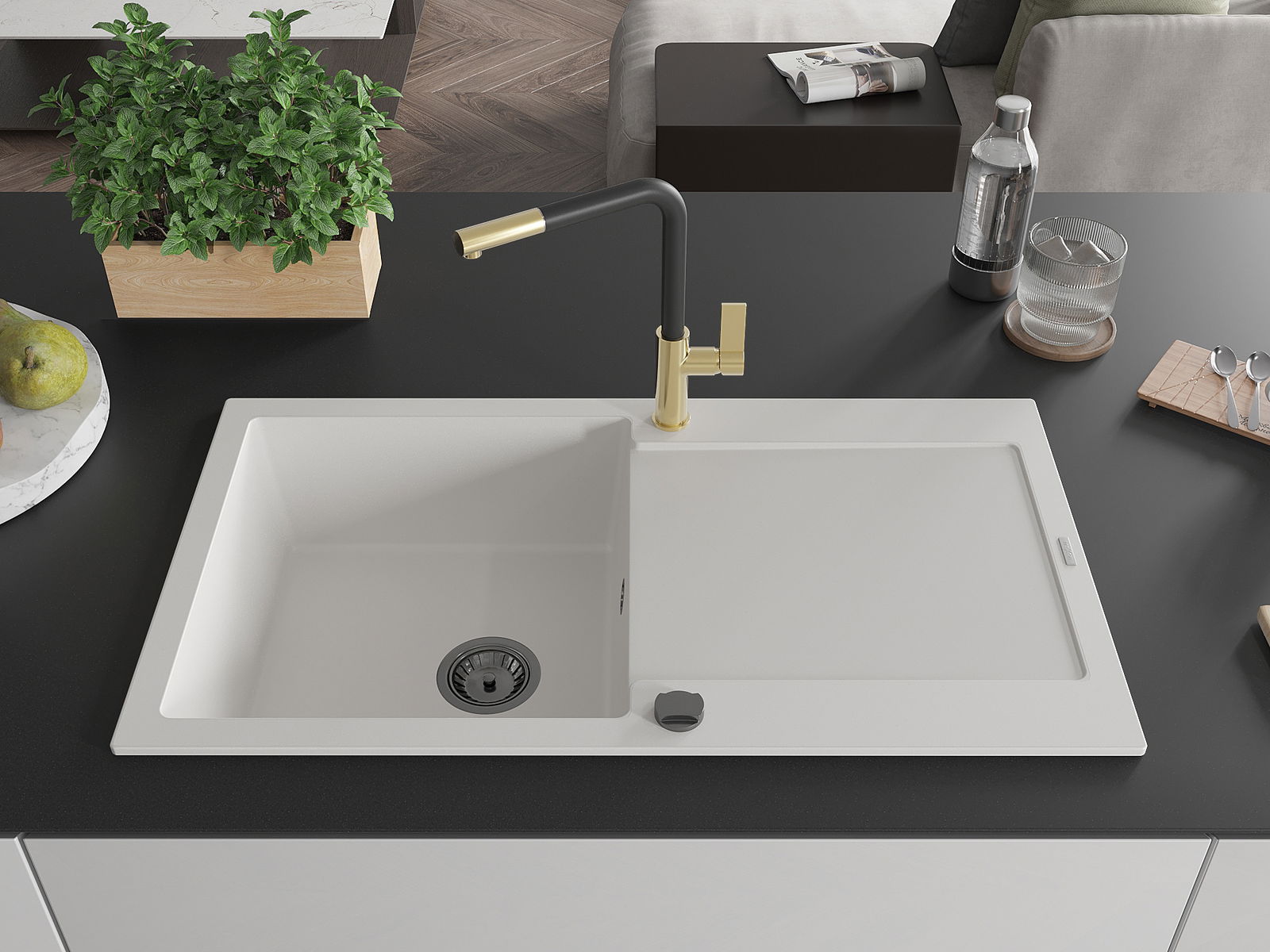 L'évier est fabriqué en granit de haute qualité. Il constitue un complément élégant et surtout pratique pour toute cuisine, quel que soit son style. La qualité et la durabilité du granit garantissent de nombreuses années d'utilisation.
