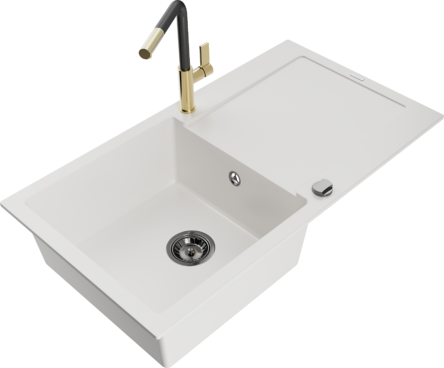 Mexen Leo évier en granit 1 bac avec égouttoir et mitigeur de cuisine Flora, blanc - 6501-20-670401-57-B
