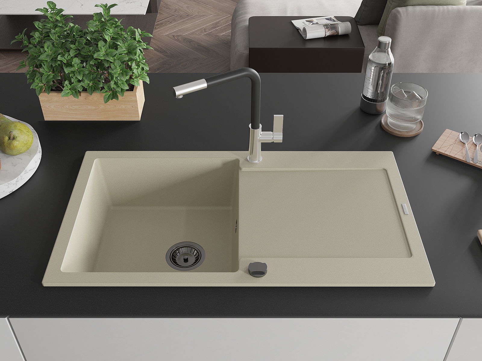 L'évier est fabriqué en granit de haute qualité. Il constitue un complément élégant et surtout pratique pour toute cuisine, quel que soit son style. La qualité et la durabilité du granit garantissent de nombreuses années d'utilisation.