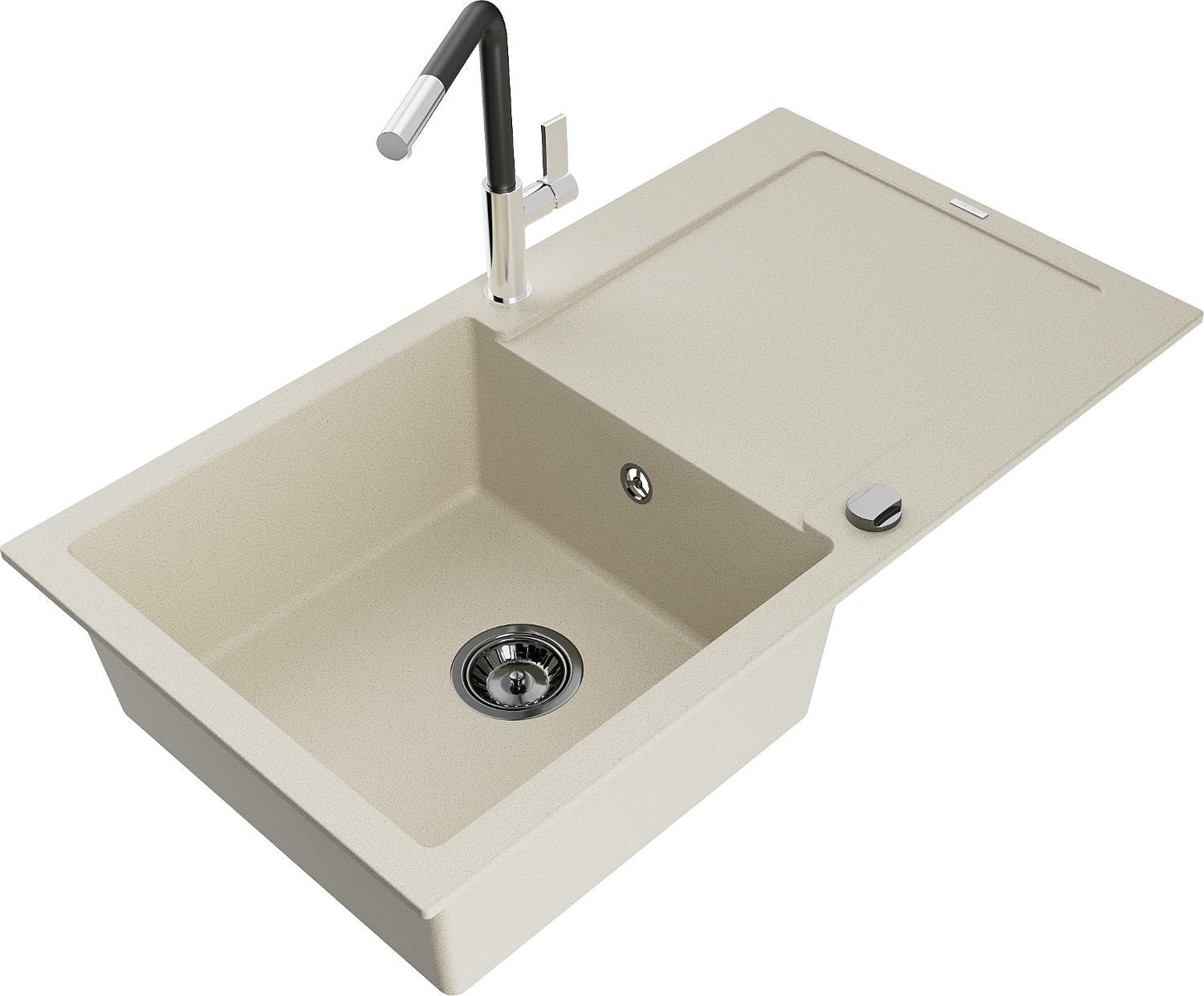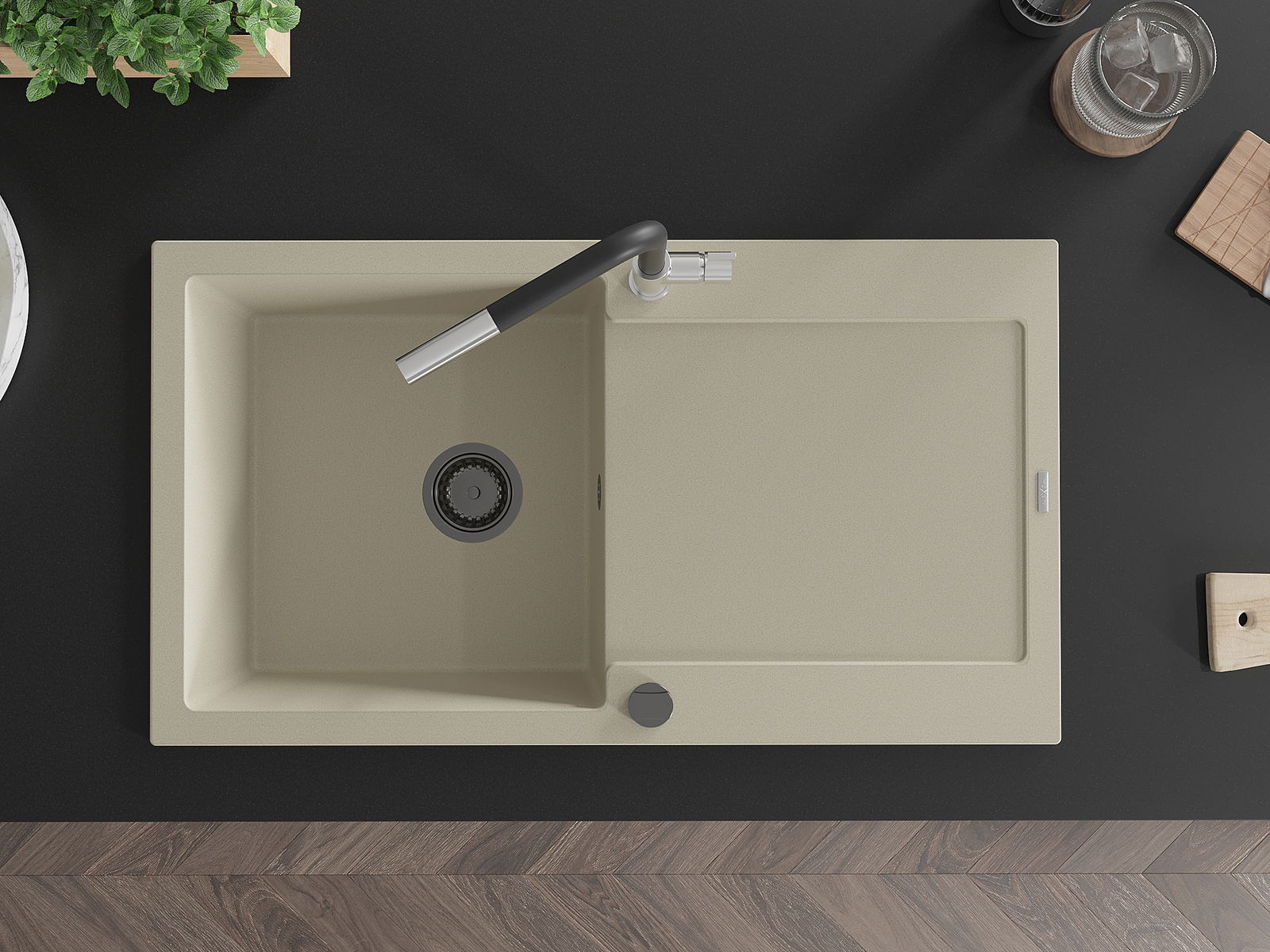 Mexen Leo évier en granit 1 bac avec égouttoir et robinet de cuisine Flora, beige - 6501-69-670401-07-B