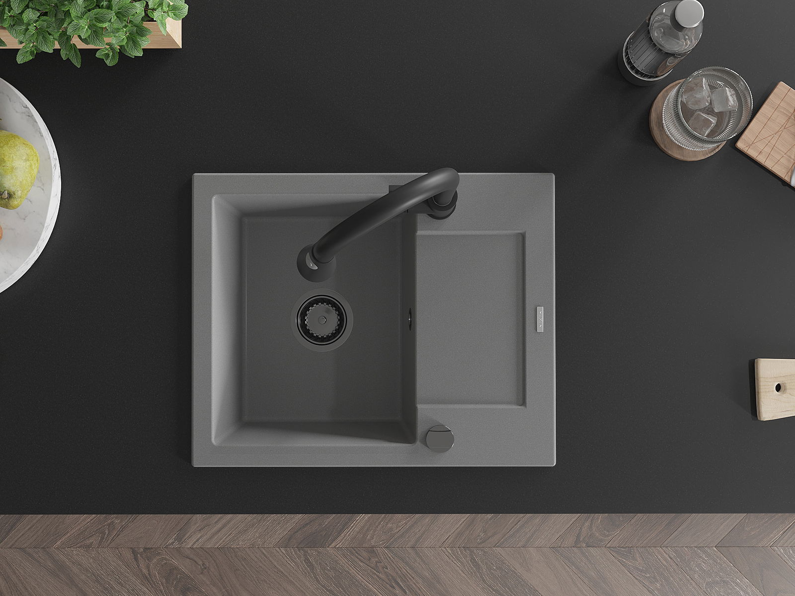 Mexen Enzo évier de cuisine en granit 1 bac avec égouttoir et robinet de cuisine Elia, gris - 6506-71-670101-70-B