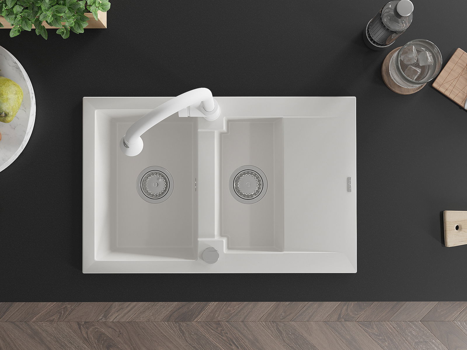 La surface de l'évier est très bien trempée et se distingue par une résistance exceptionnelle aux dommages mécaniques et aux rayures. Ce matériau durable vous permettra de profiter de son bel aspect pendant de nombreuses années.