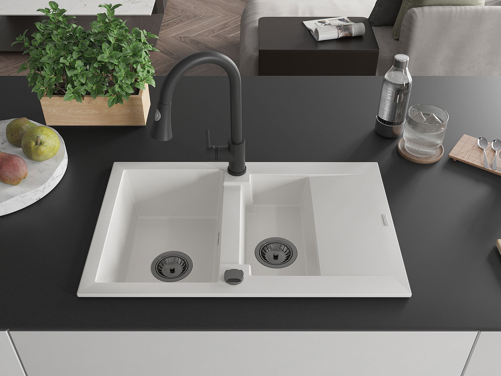 La surface de l'évier est très bien trempée et se distingue par une résistance exceptionnelle aux dommages mécaniques et aux rayures. Ce matériau durable vous permettra de profiter de son bel aspect pendant de nombreuses années.