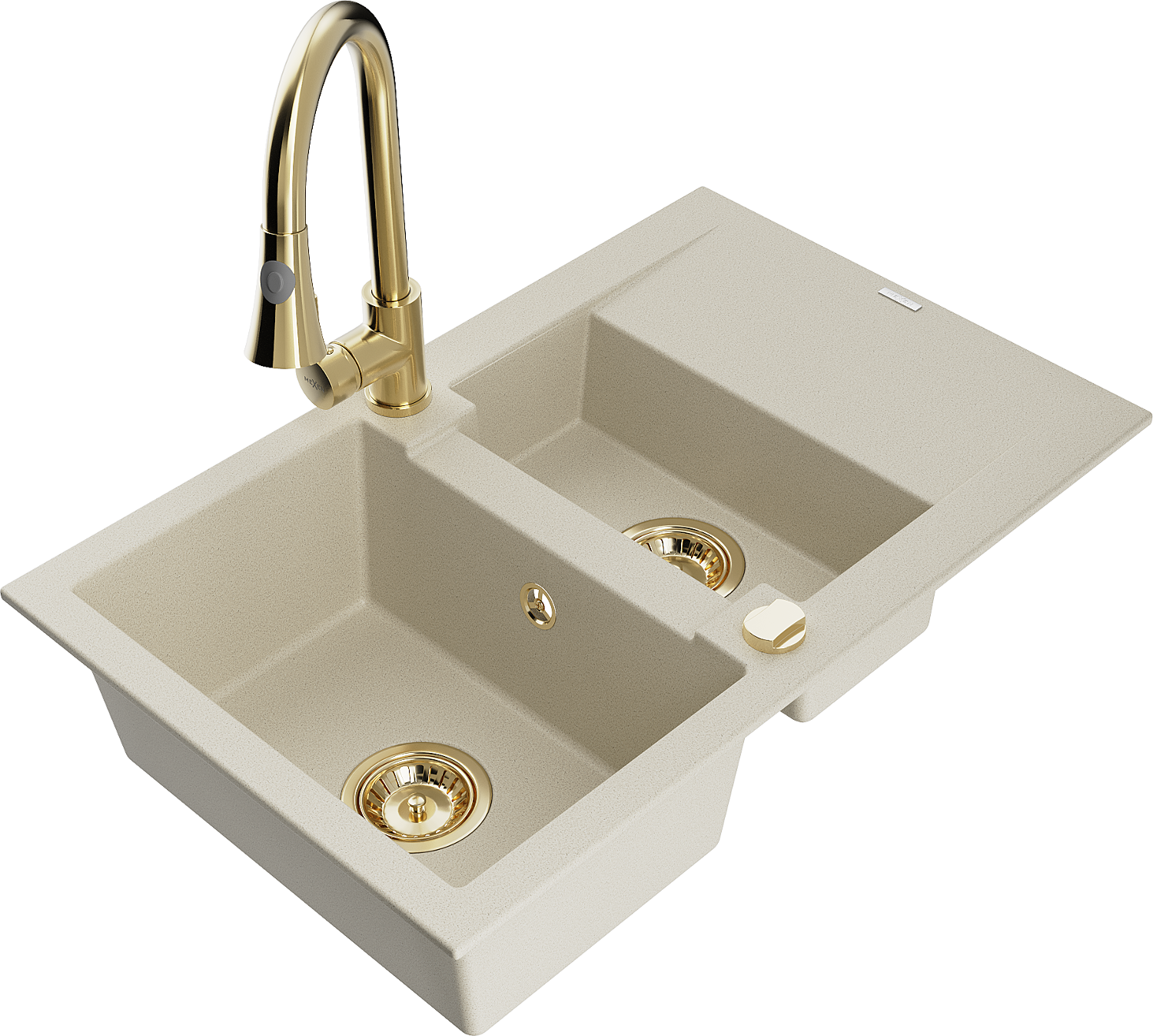 Mexen Gaspar évier en granit 1,5 bac avec égouttoir et robinet de cuisine Elia, beige - 6507-69-670101-50