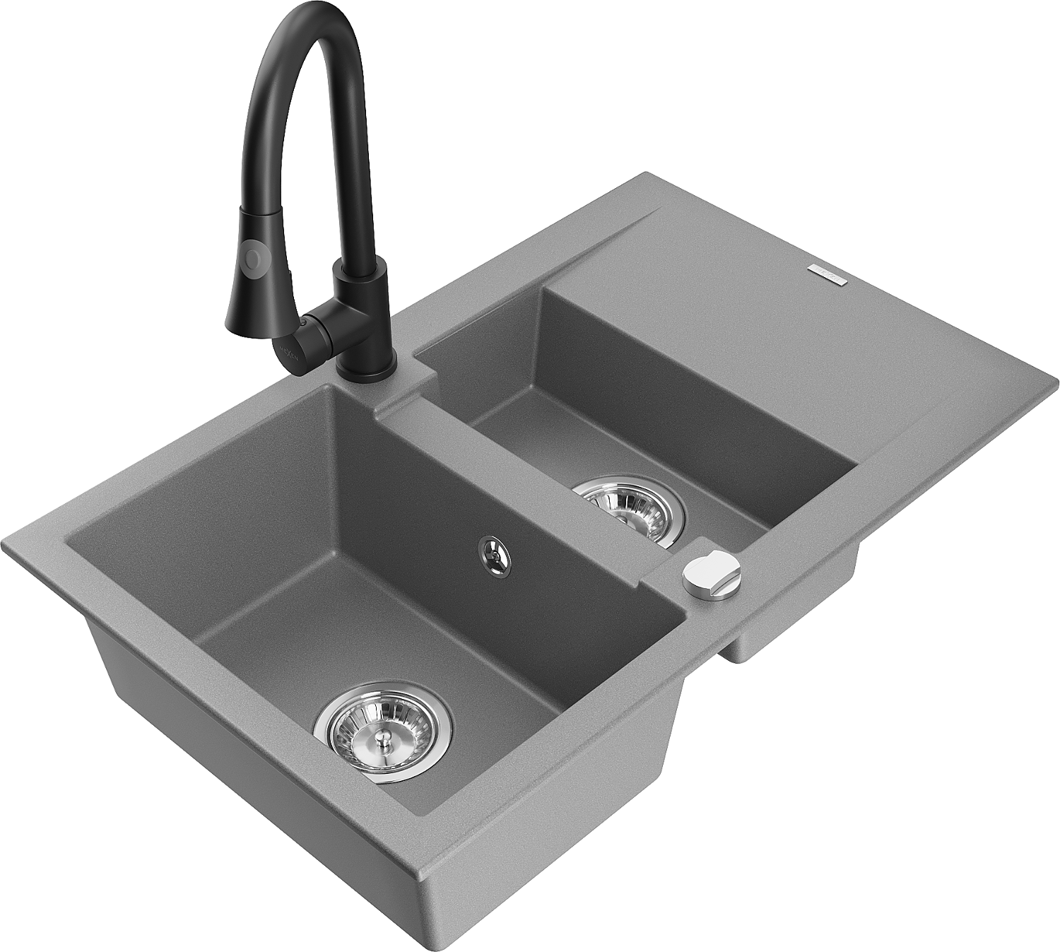 Mexen Gaspar évier en granit 1,5 bac avec égouttoir et robinet de cuisine Elia, gris - 6507-71-670101-70