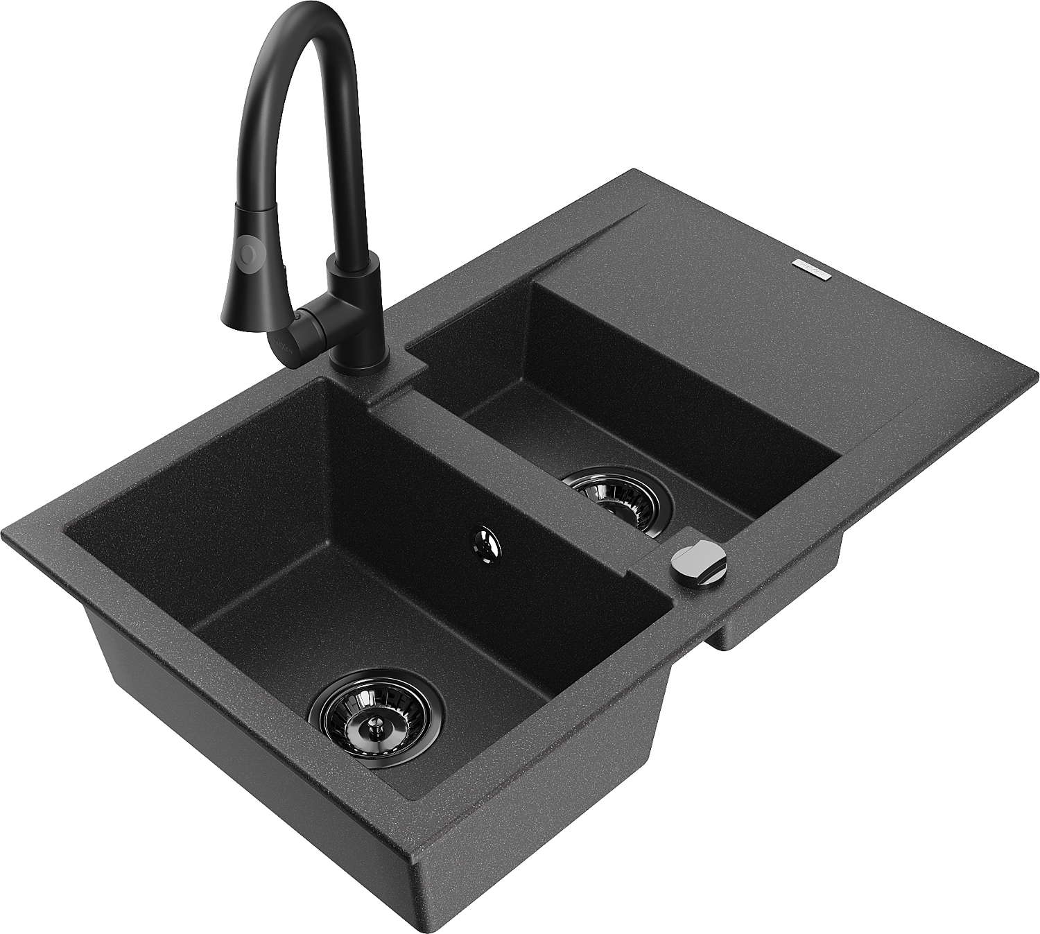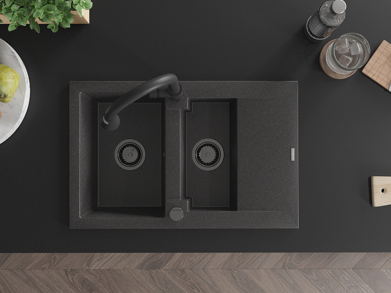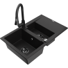 Mexen Gaspar évier en granit 1,5-bac avec égouttoir et mitigeur cuisine Elia, noir moucheté - 6507-76-670101-70-B