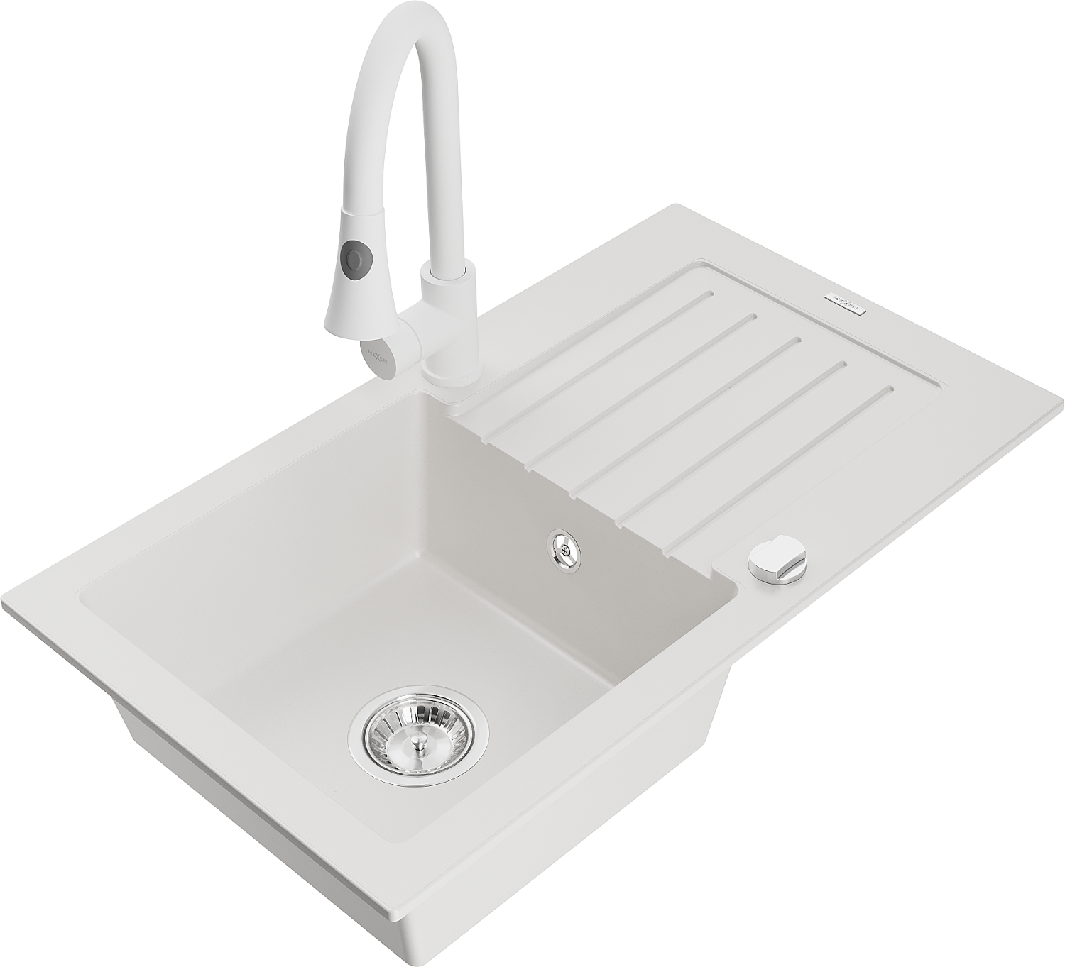 Mexen Pablo évier en granit 1 bac avec égouttoir et mitigeur cuisine Elia, blanc - 6510-20-670101-20
