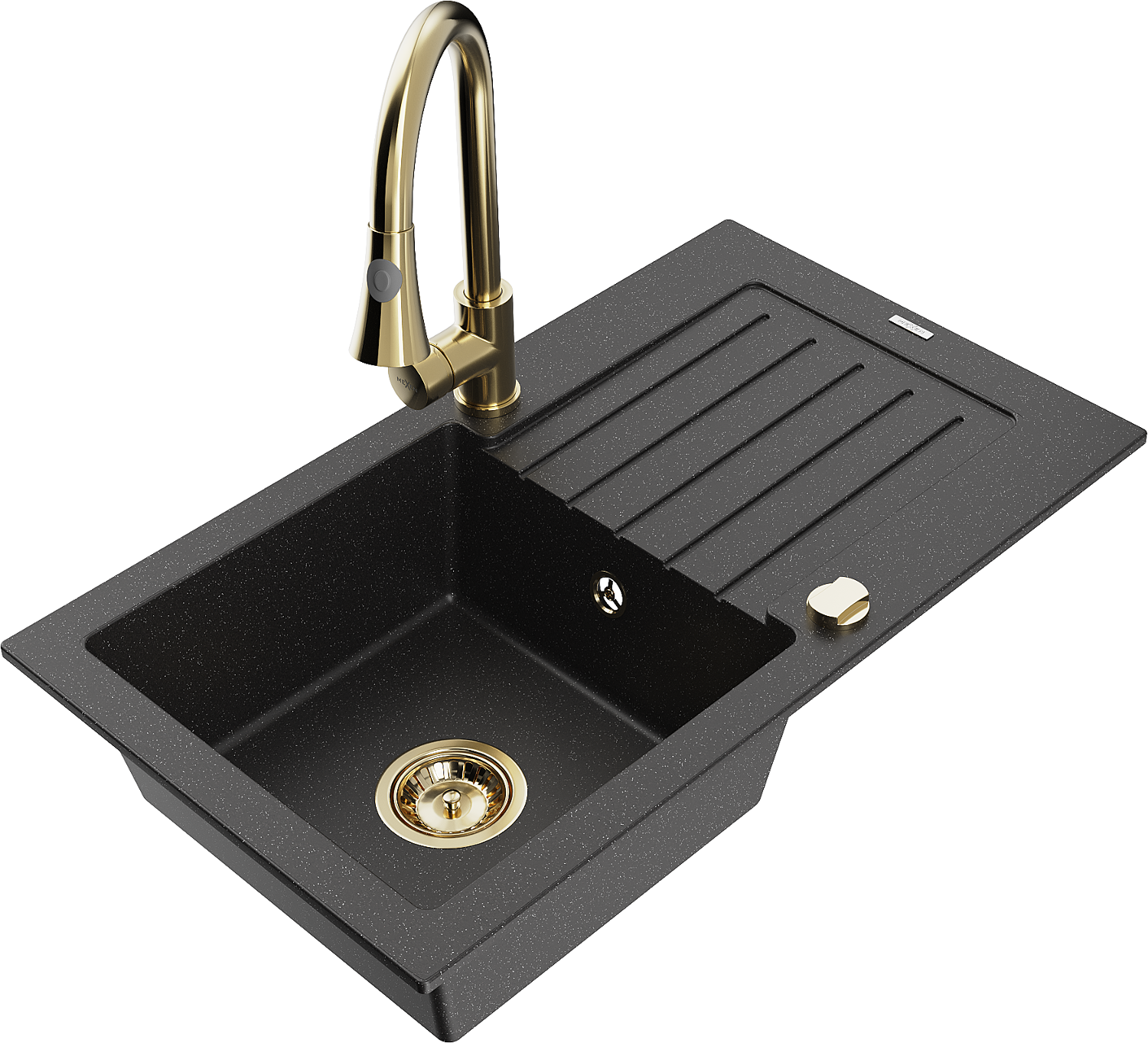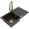 Mexen Pablo évier de cuisine en granit 1 bac avec égouttoir et robinet de cuisine Elia, noir/métal argenté - 6510-73-670101-50