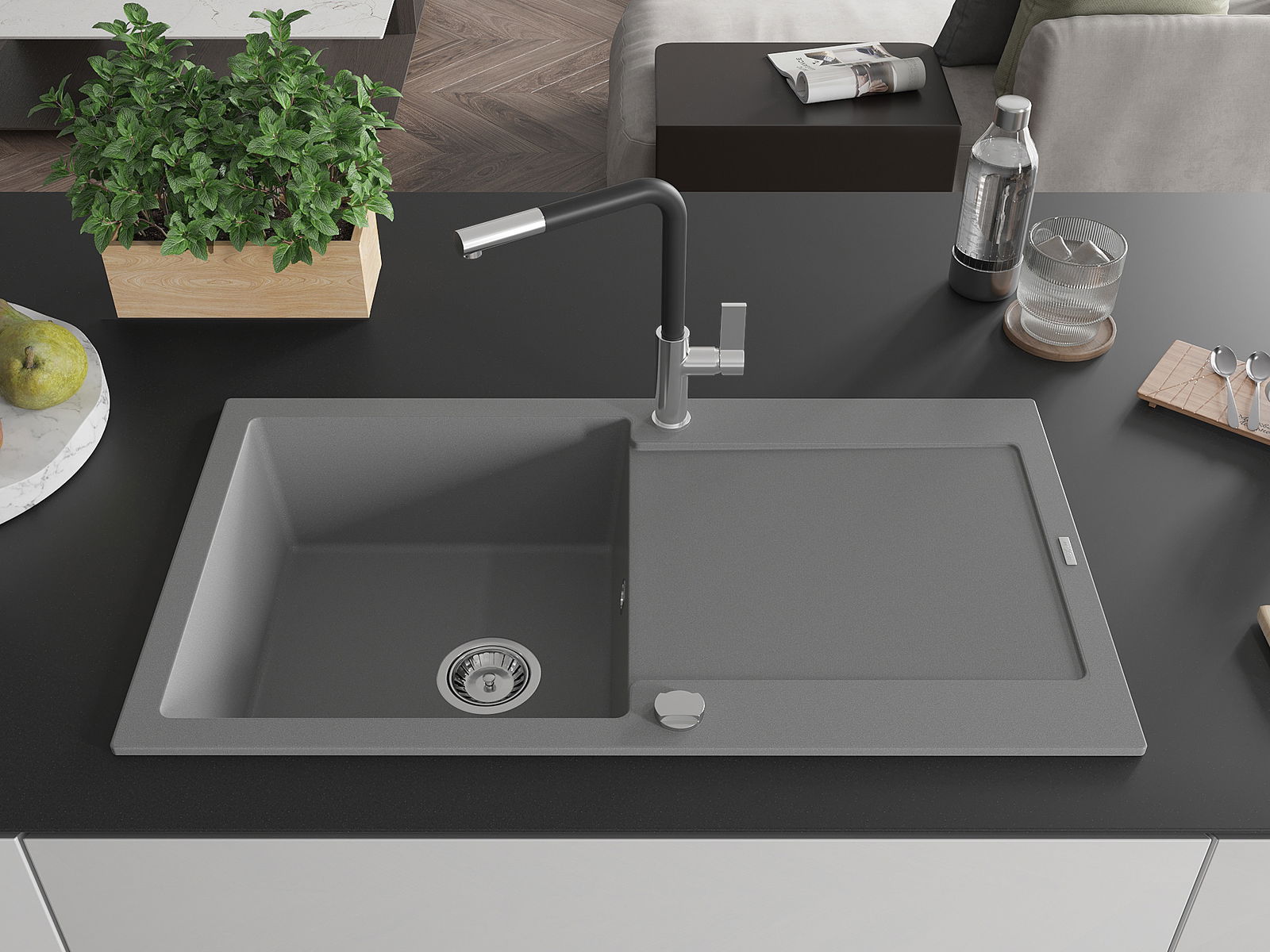 L'évier est fabriqué en granit de haute qualité. Il constitue un complément élégant et surtout pratique pour toute cuisine, quel que soit son style. La qualité et la durabilité du granit garantissent de nombreuses années d'utilisation.