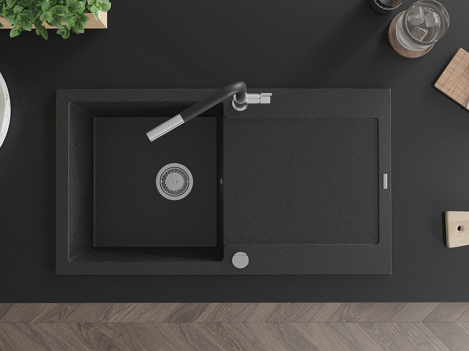 La surface de l'évier est très bien trempée et se distingue par une résistance exceptionnelle aux dommages mécaniques et aux rayures. Ce matériau durable vous permettra de profiter de son bel aspect pendant de nombreuses années.