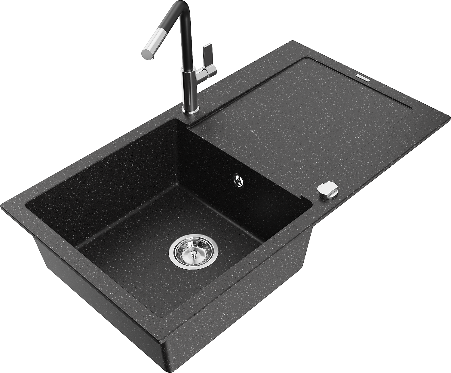 Mexen Leo évier de cuisine en granit 1 bac avec égouttoir et robinet de cuisine Flora, noir/métallique argent - 6501-73-670401-?