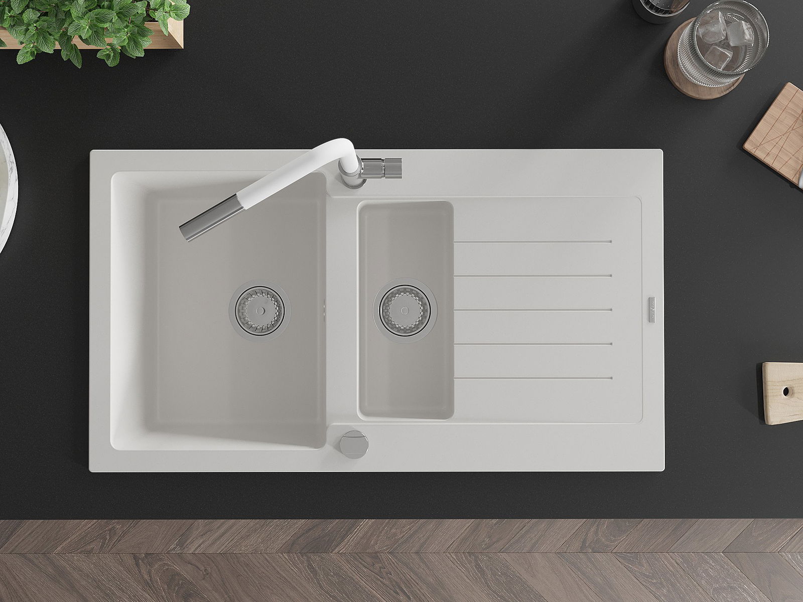 La surface de l'évier est très bien trempée et se distingue par une résistance exceptionnelle aux dommages mécaniques et aux rayures. Ce matériau durable vous permettra de profiter de son bel aspect pendant de nombreuses années.