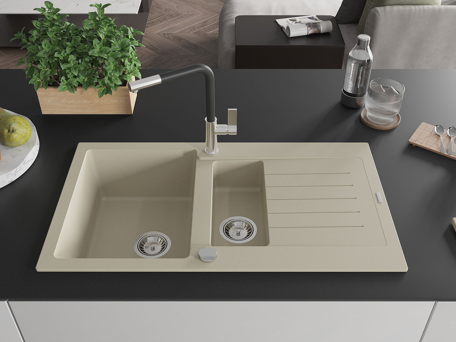 L'évier est fabriqué en granit de haute qualité. Il constitue un complément élégant et surtout pratique pour toute cuisine, quel que soit son style. La qualité et la durabilité du granit garantissent de nombreuses années d'utilisation.