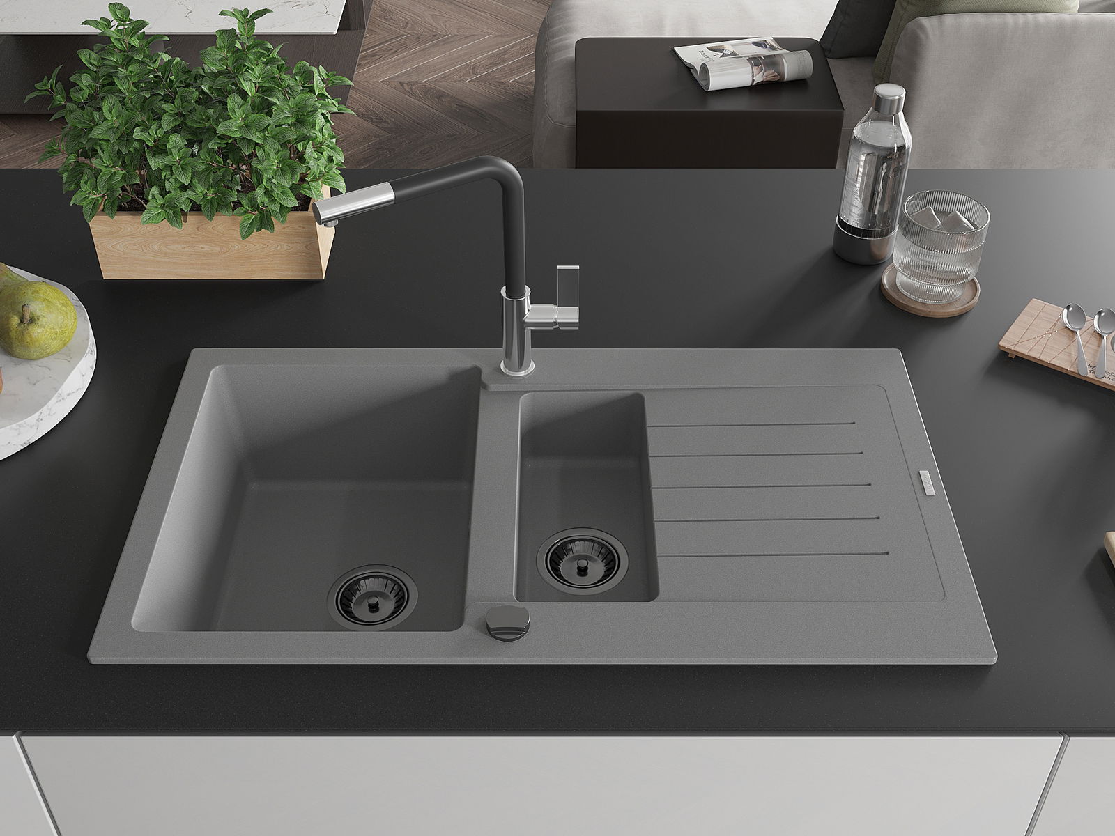L'évier est fabriqué en granit de haute qualité. Il constitue un complément élégant et surtout pratique pour toute cuisine, quel que soit son style. La qualité et la durabilité du granit garantissent de nombreuses années d'utilisation.