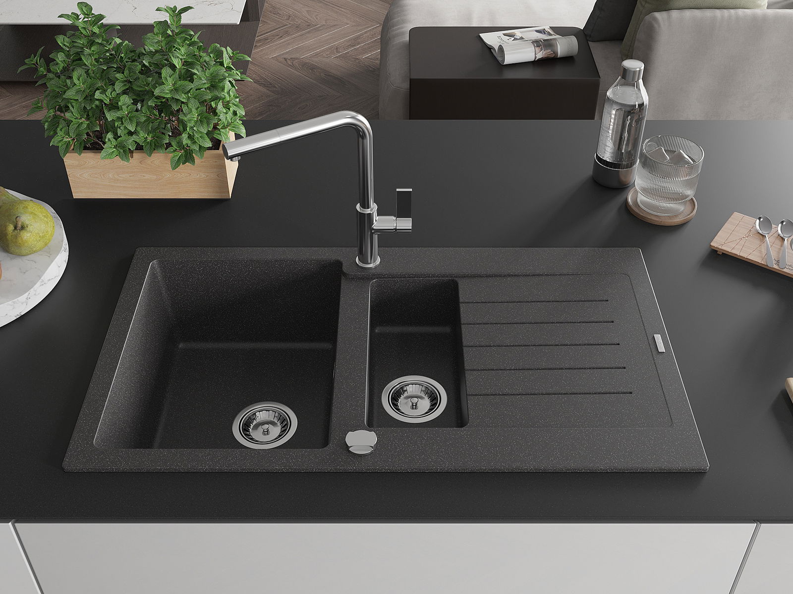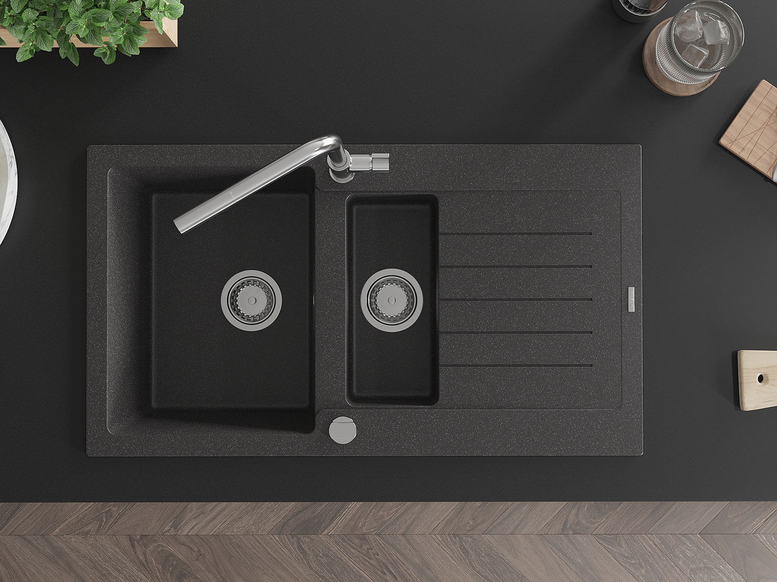 La surface de l'évier est très bien trempée et se distingue par une résistance exceptionnelle aux dommages mécaniques et aux rayures. Ce matériau durable vous permettra de profiter de son bel aspect pendant de nombreuses années.