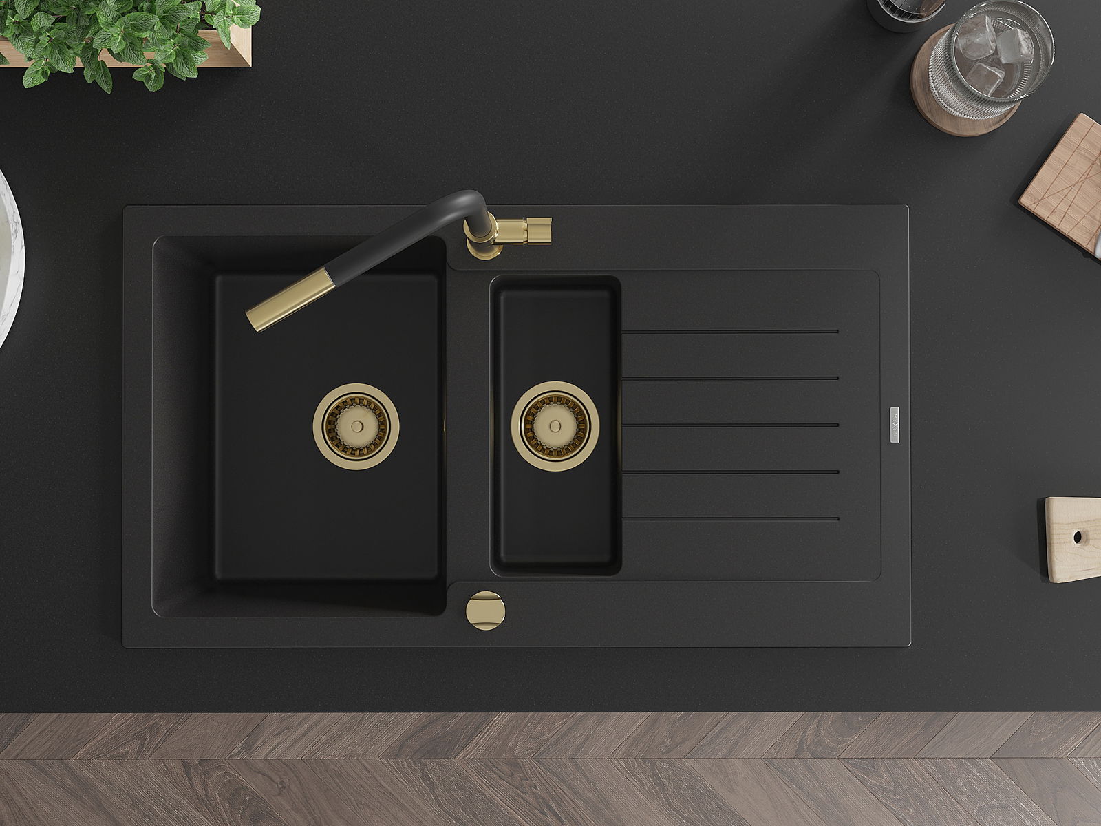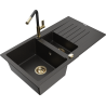 Mexen Matias évier en granit 1,5 bac avec égouttoir et robinet de cuisine Flora, noir - 6502-77-670401-57-G