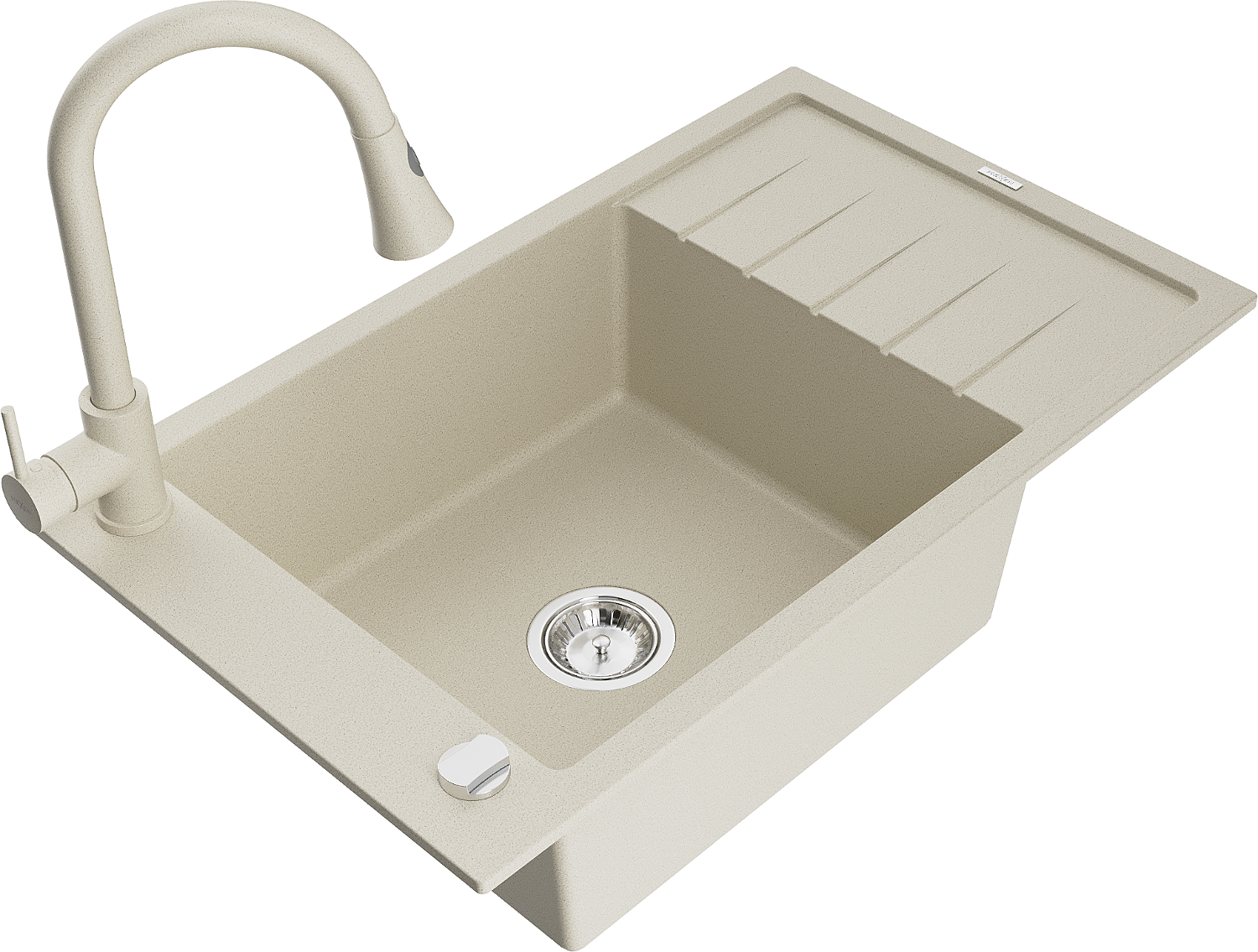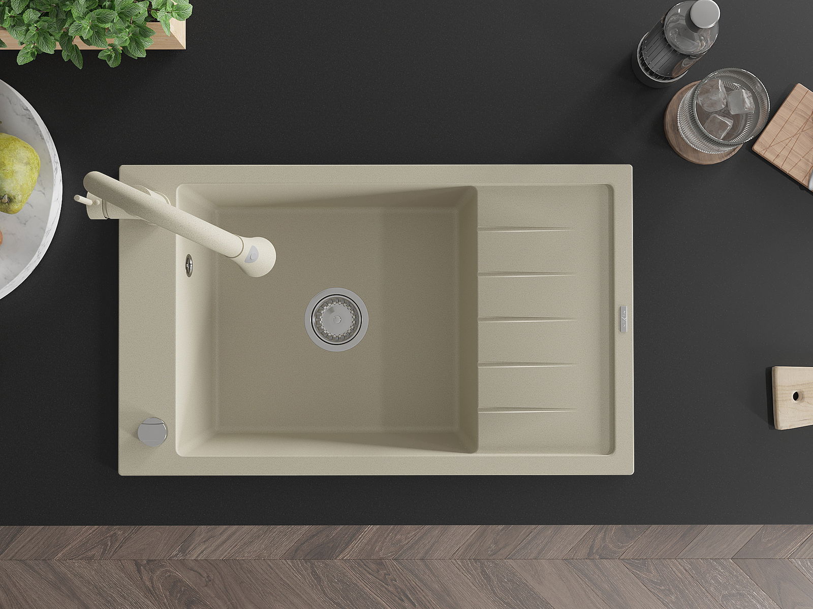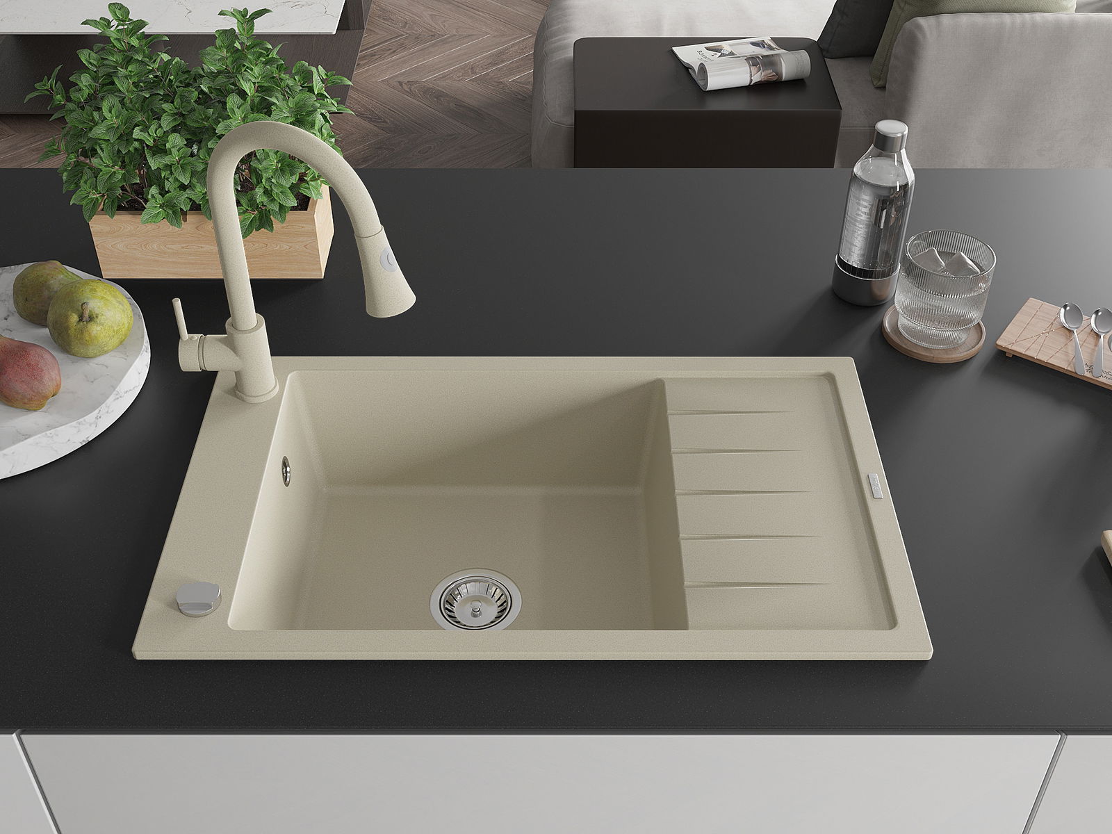 Mexen Elias évier en granit 1 bac avec égouttoir et robinet de cuisine Elia, beige - 6511-69-670101-69