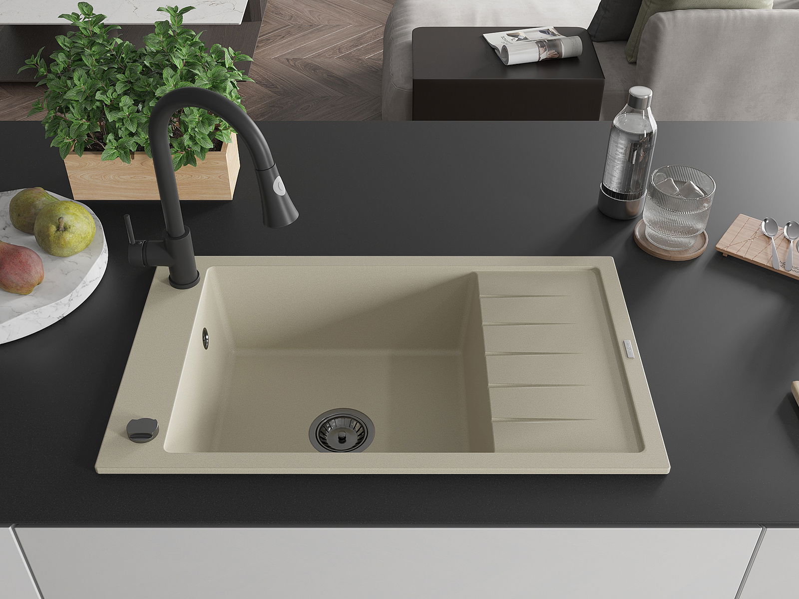 L'évier est fabriqué en granit de haute qualité. Il constitue un complément élégant et surtout pratique pour toute cuisine, quel que soit son style. La qualité et la durabilité du granit garantissent de nombreuses années d'utilisation.