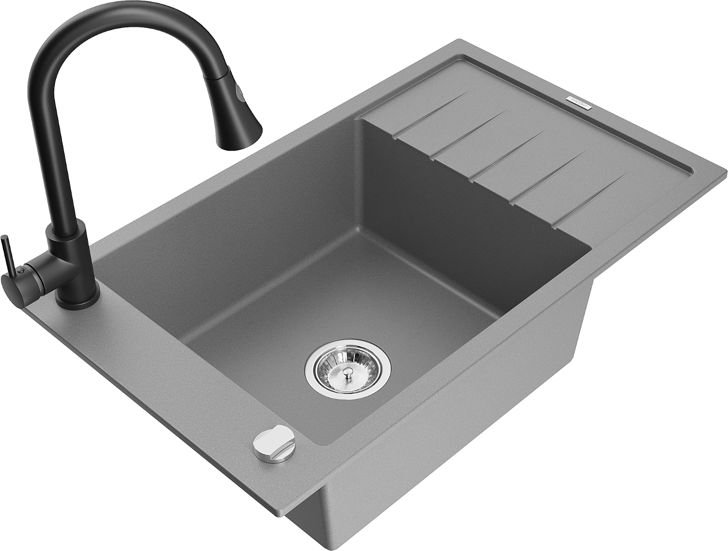 Mexen Elias évier en granit 1 cuve avec égouttoir et robinet de cuisine Elia, gris - 6511-71-670101-70