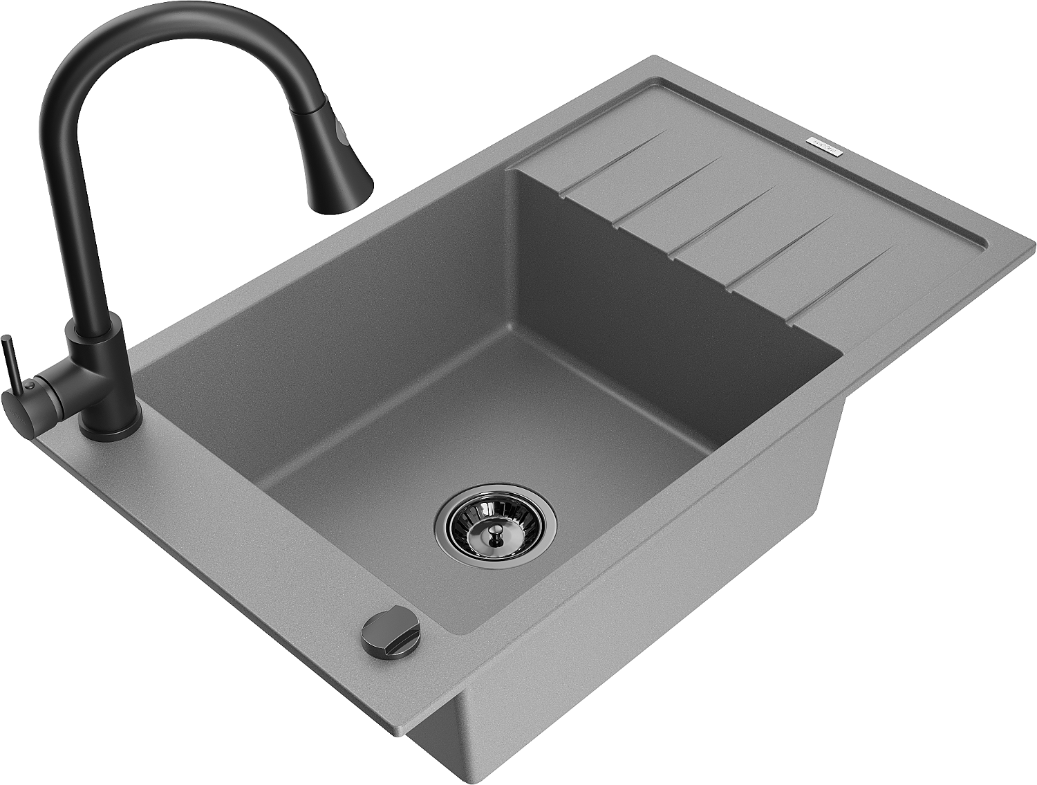 Mexen Elias évier de cuisine en granit à 1 bac avec égouttoir et mitigeur Elia, gris - 6511-71-670101-70-B