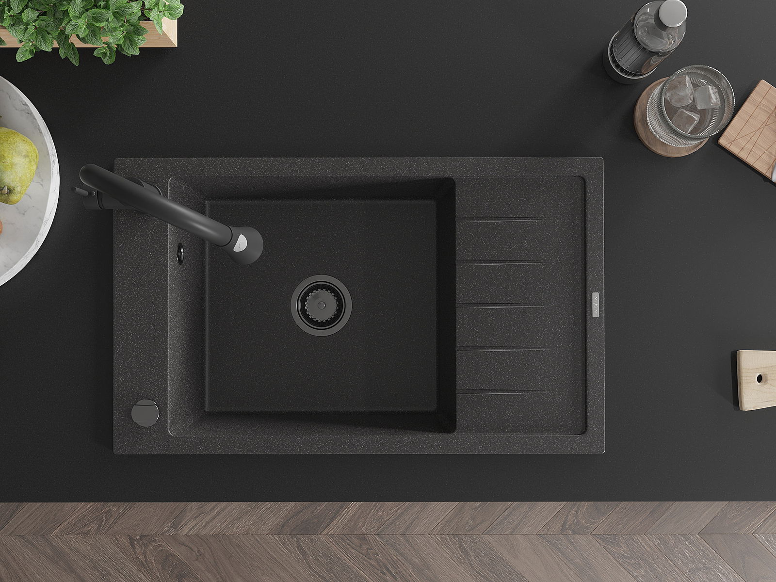 L'évier est fabriqué en granit de haute qualité. Il constitue un complément élégant et surtout pratique pour toute cuisine, quel que soit son style. La qualité et la durabilité du granit garantissent de nombreuses années d'utilisation.