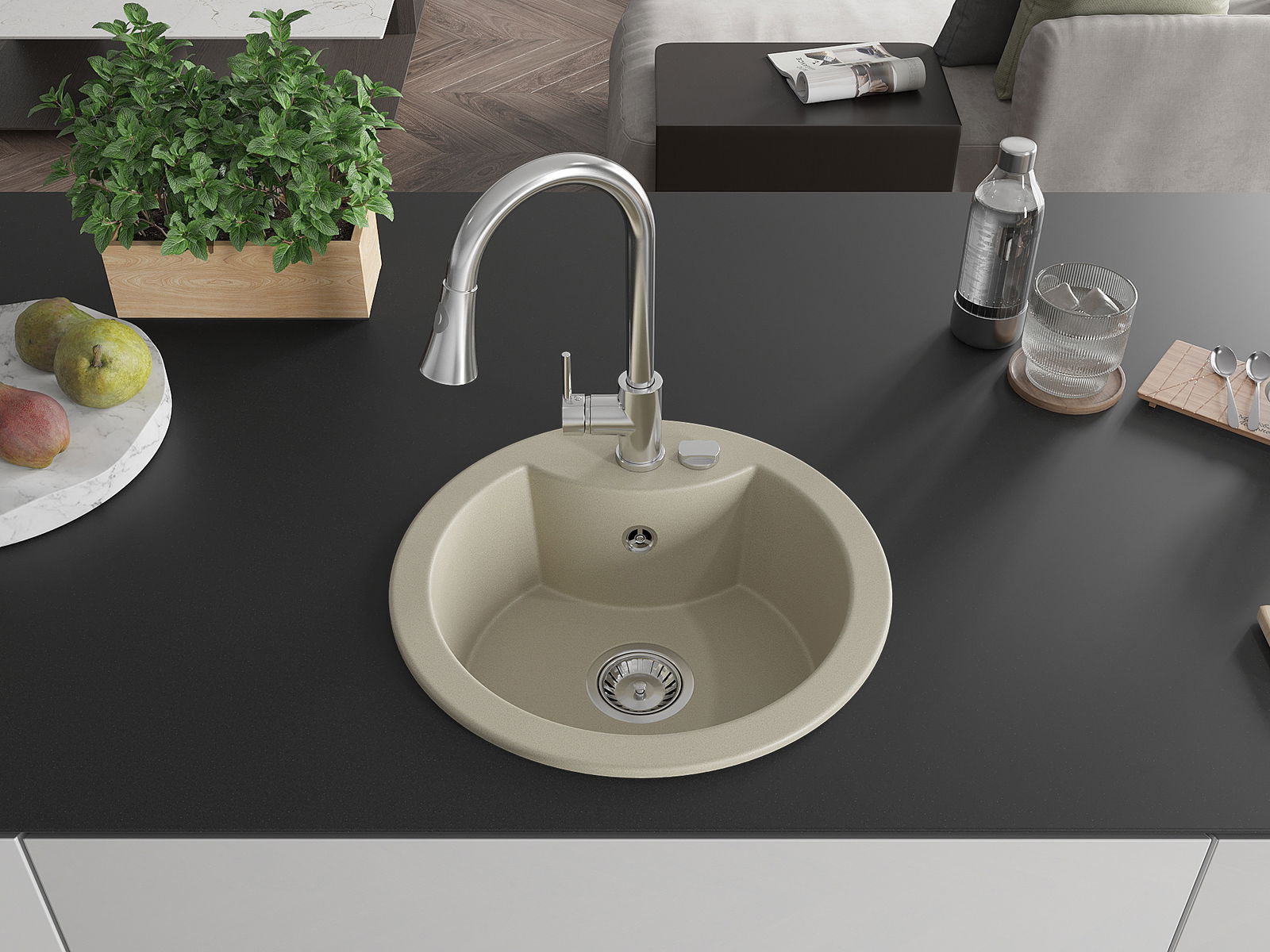 L'évier est fabriqué en granit de haute qualité. Il constitue un complément élégant et surtout pratique pour toute cuisine, quel que soit son style. La qualité et la durabilité du granit garantissent de nombreuses années d'utilisation.