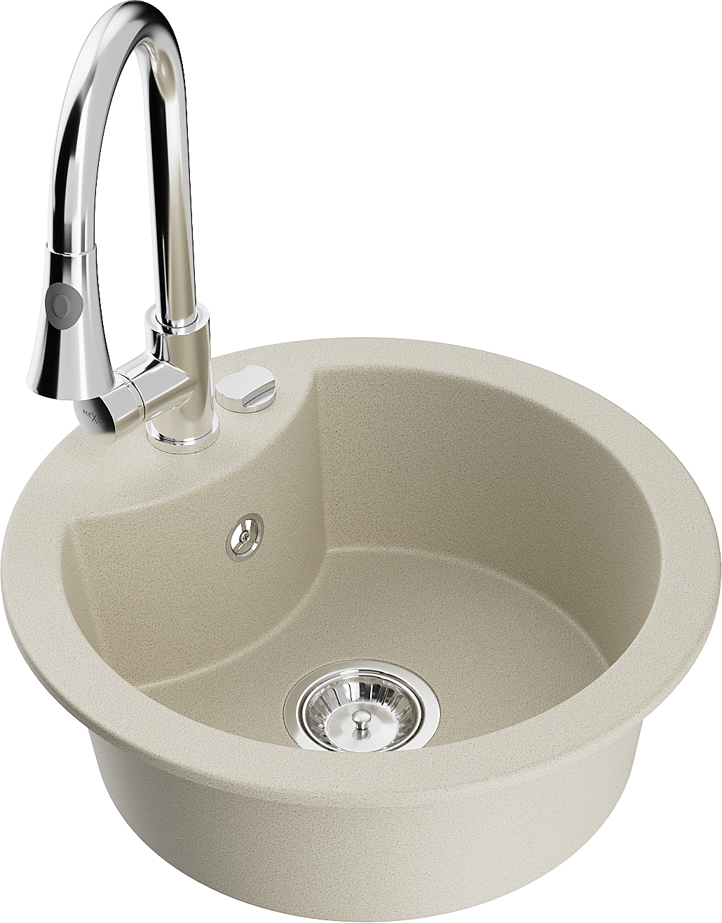 Mexen Diego évier en granit 1-bac avec mitigeur de cuisine Elia, beige - 6512-69-670101-00