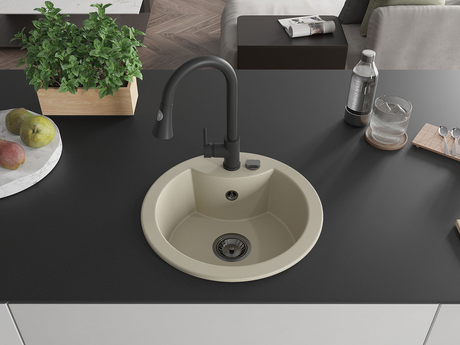 L'évier est fabriqué en granit de haute qualité. Il constitue un complément élégant et surtout pratique pour toute cuisine, quel que soit son style. La qualité et la durabilité du granit garantissent de nombreuses années d'utilisation.