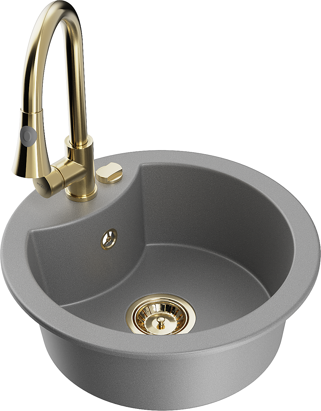 Mexen Diego évier en granit 1 bac avec mitigeur de cuisine Elia, gris - 6512-71-670101-50