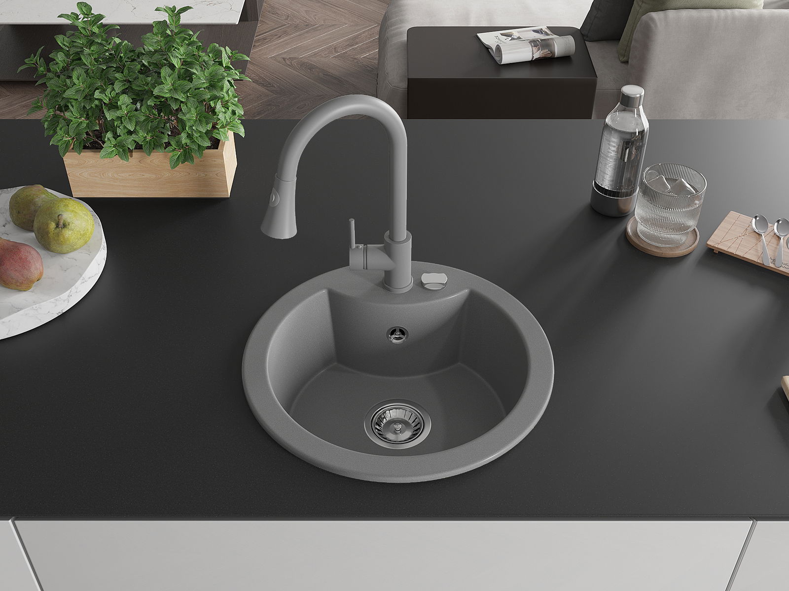 L'évier est fabriqué en granit de haute qualité. Il constitue un complément élégant et surtout pratique pour toute cuisine, quel que soit son style. La qualité et la durabilité du granit garantissent de nombreuses années d'utilisation.