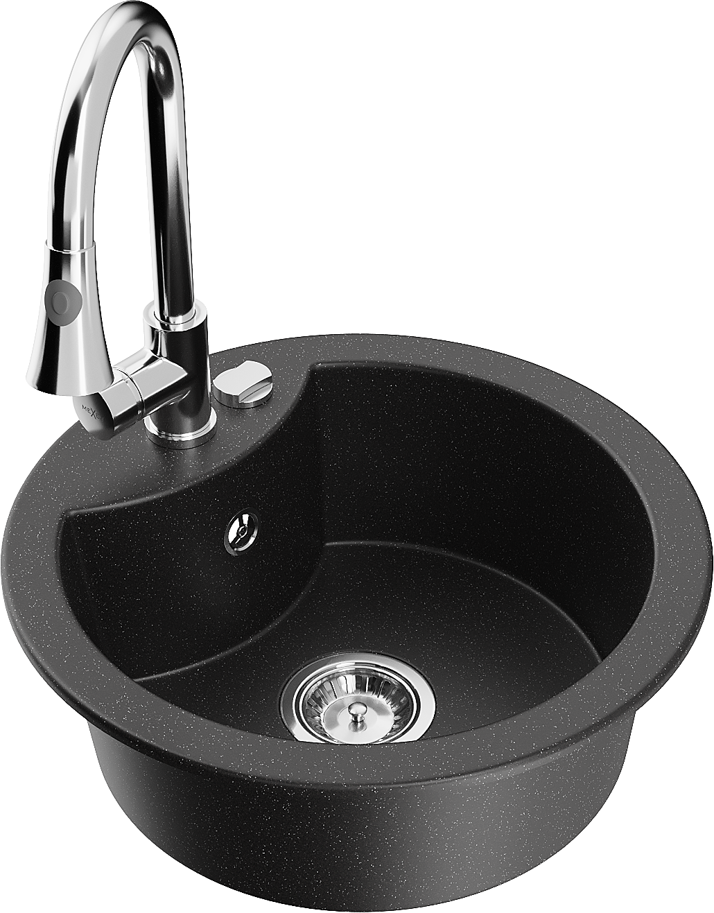 Mexen Diego évier en granit 1 bac avec mitigeur de cuisine Elia, noir/métallique argent - 6512-73-670101-00
