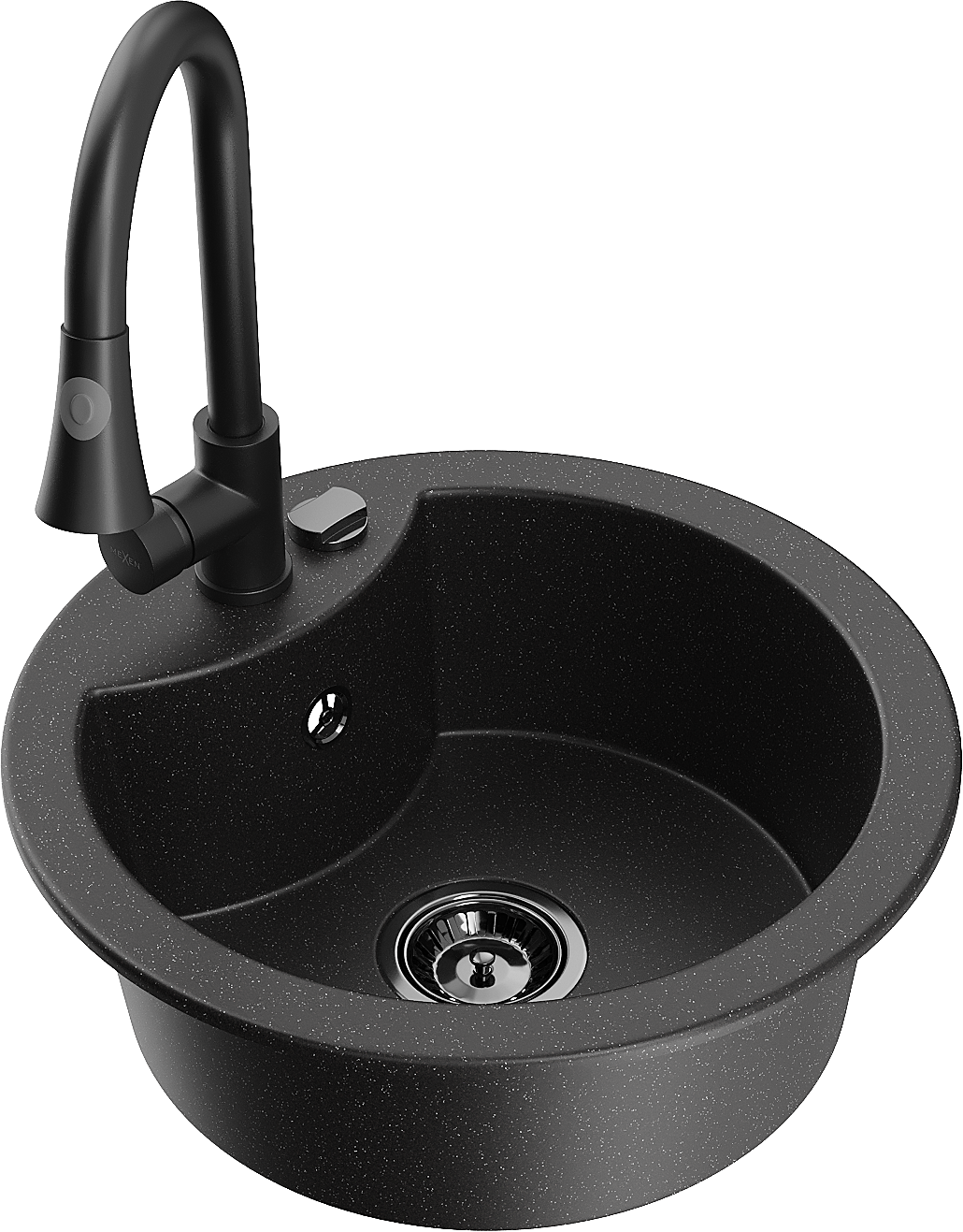 Mexen Diego évier en granit à 1 bac avec robinet de cuisine Elia, noir/argent métallisé - 6512-73-670101-70-B
