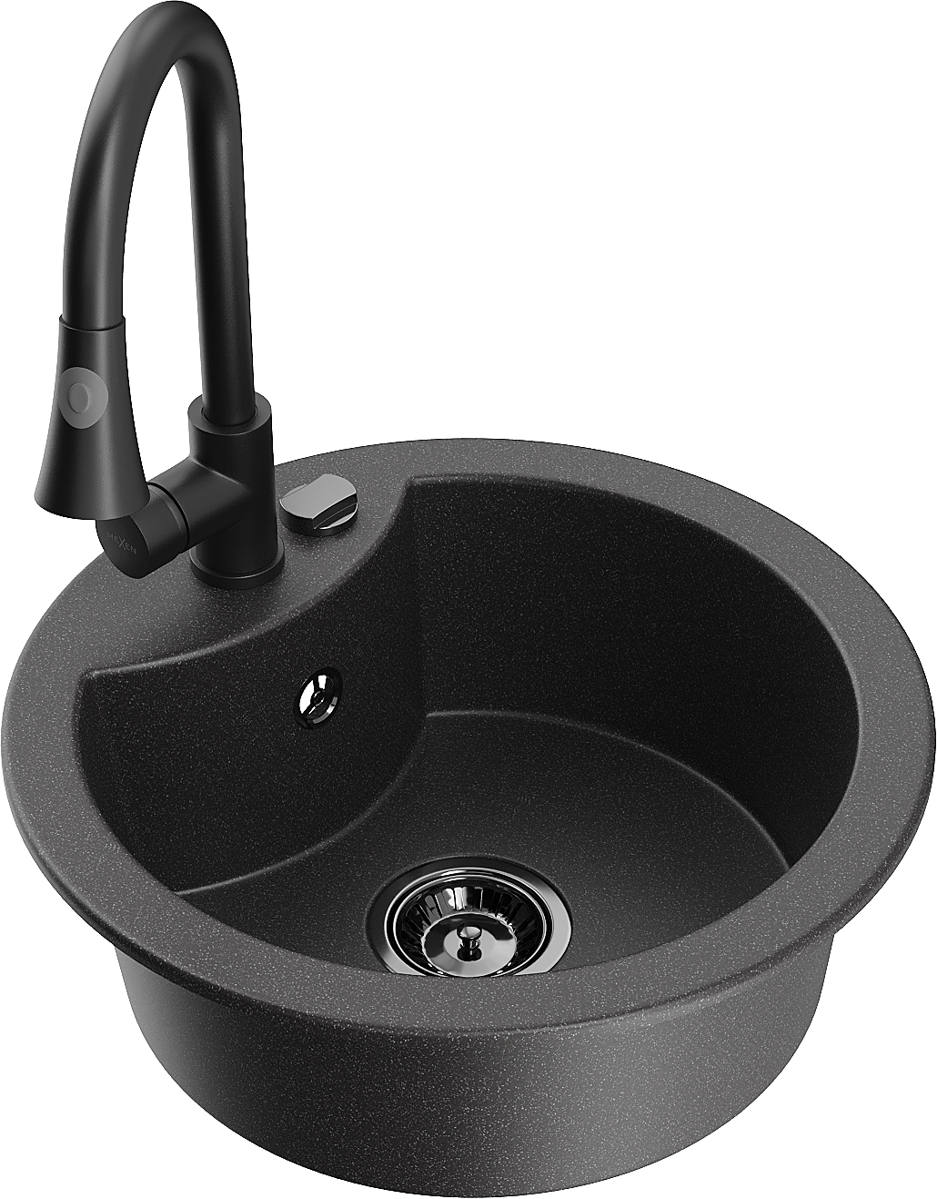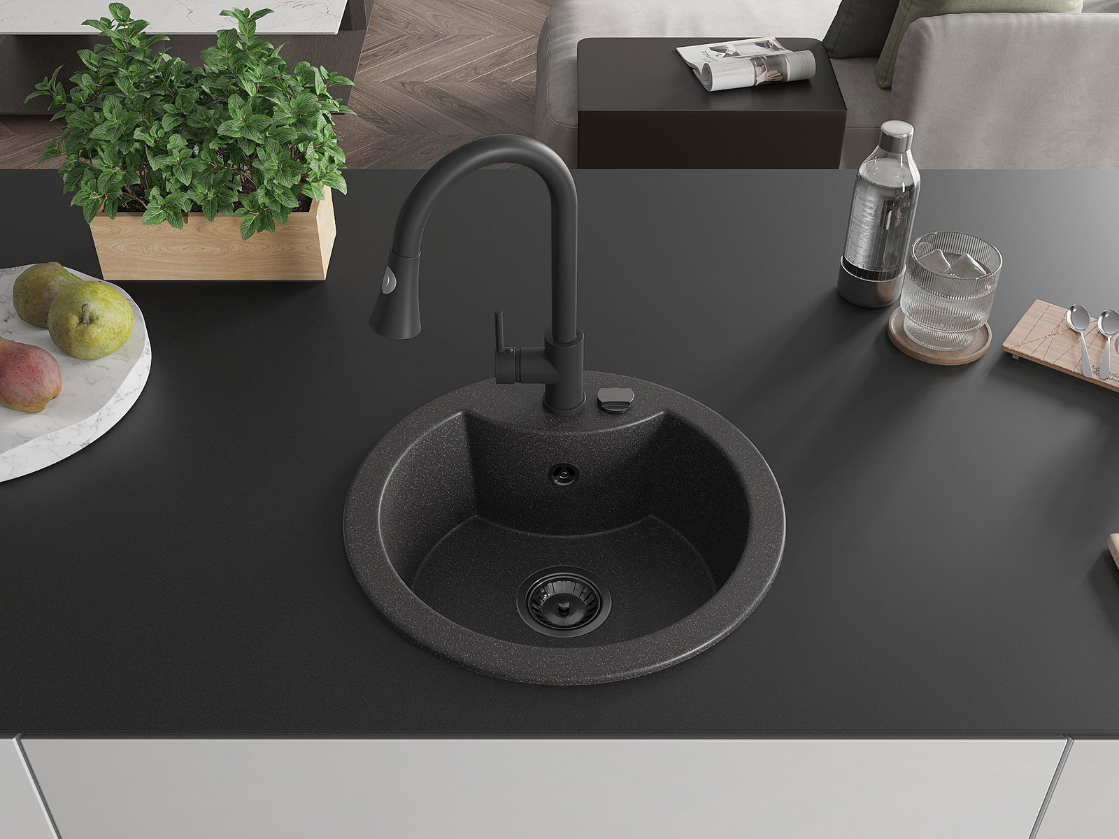 Mexen Diego évier en granit 1 cuve avec robinet de cuisine Elia, noir moucheté - 6512-76-670101-70-B