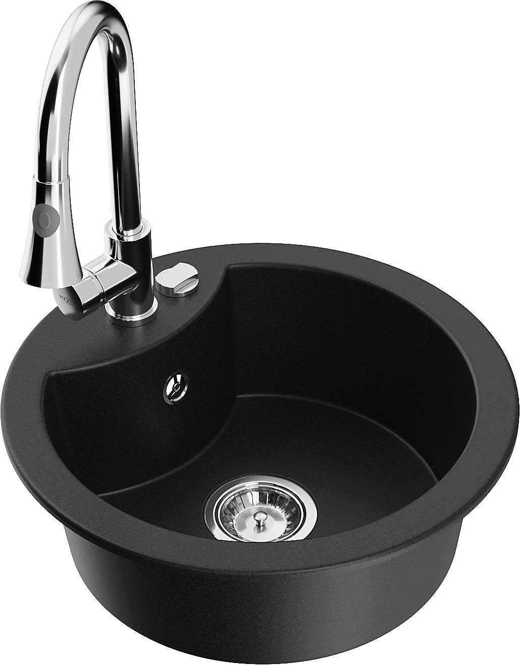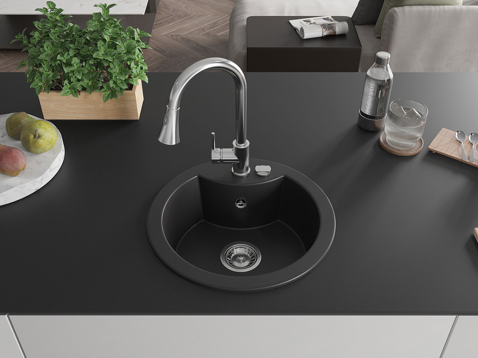 Mexen Diego évier en granit 1 bac avec mitigeur de cuisine Elia, noir - 6512-77-670101-00