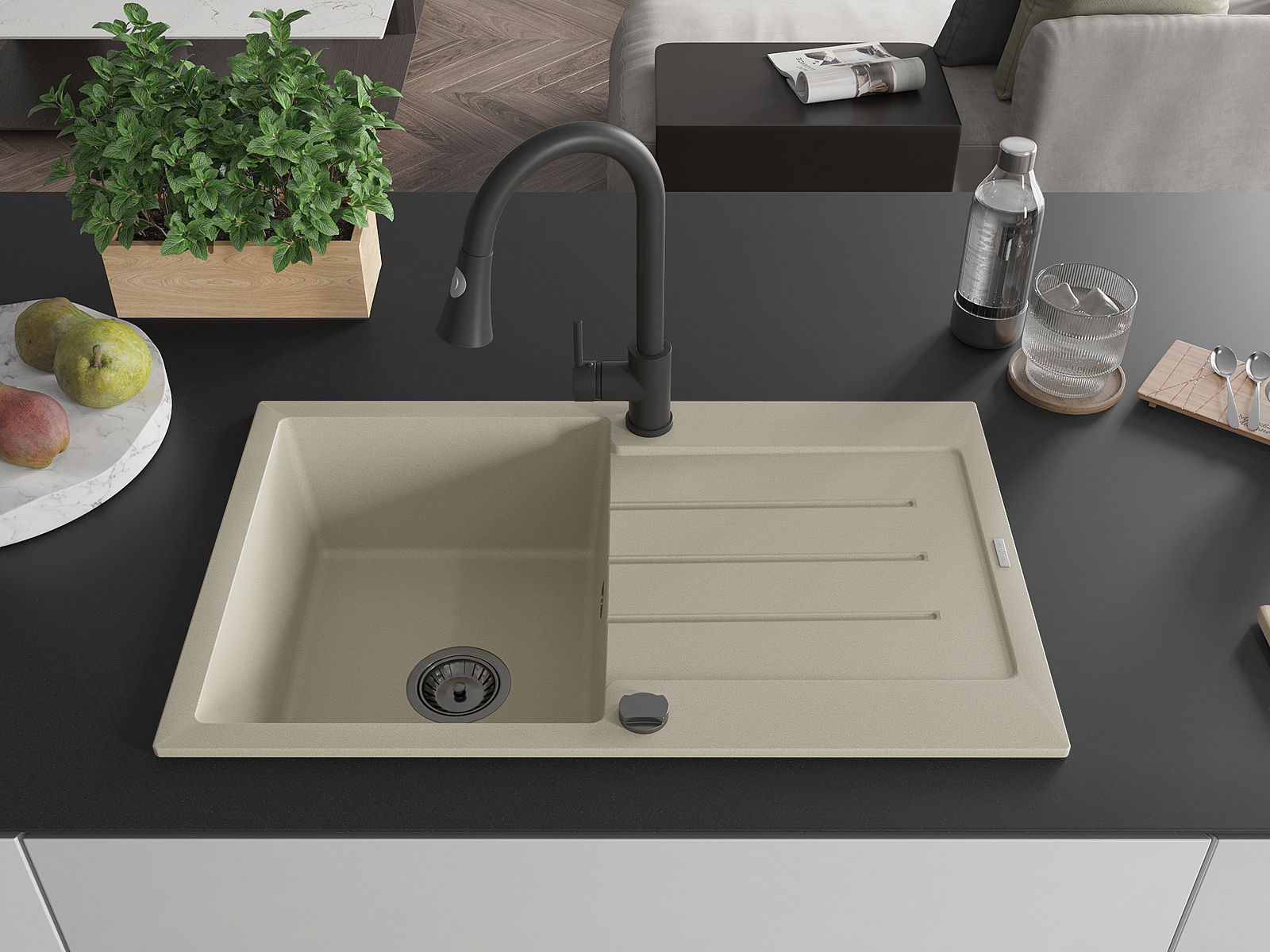 L'évier est fabriqué en granit de haute qualité. Il constitue un complément élégant et surtout pratique pour toute cuisine, quel que soit son style. La qualité et la durabilité du granit garantissent de nombreuses années d'utilisation.