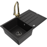 Mexen Bruno évier en granit 1 bac avec égouttoir et robinet de cuisine Elia, noir/doré métallisé - 6513-75-670101-50-B