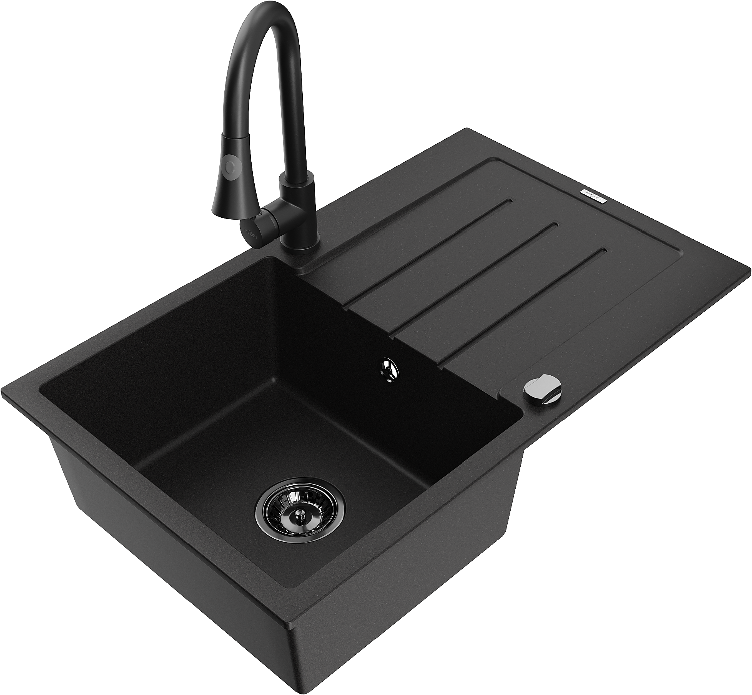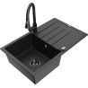 Mexen Bruno évier de cuisine en granit 1 bac avec égouttoir et robinet de cuisine Elia, noir - 6513-77-670101-70-B